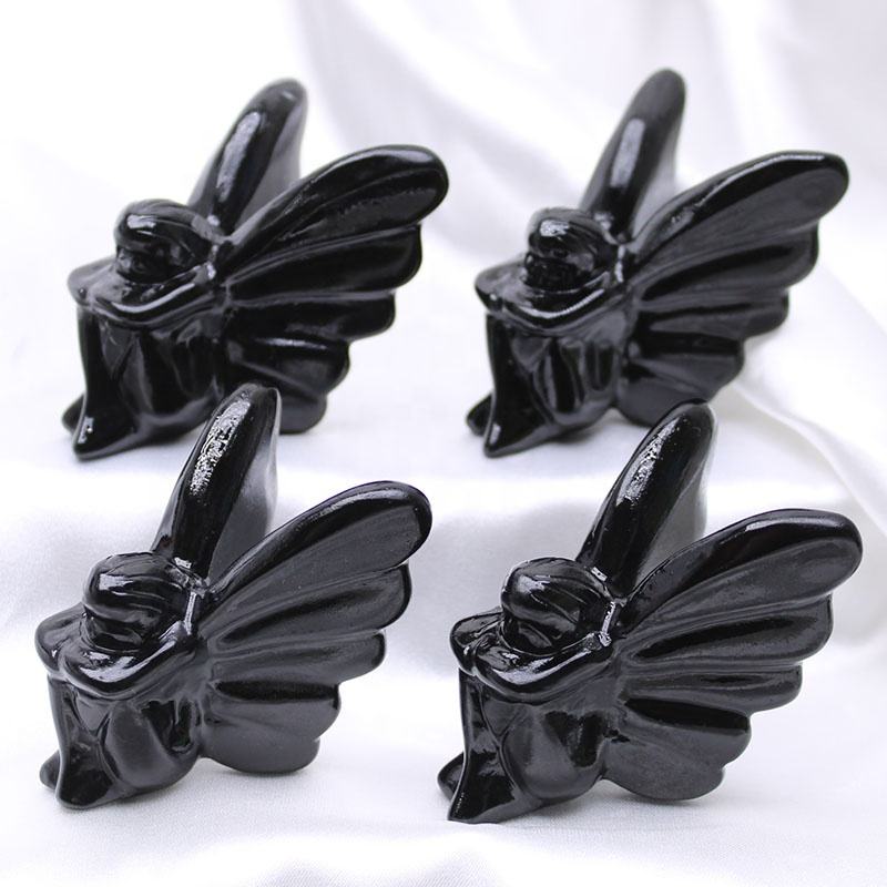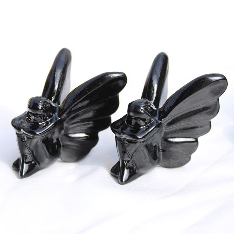Vendita calda cristallo intaglio artigianato cristallo nero ossidiana cristallo farfalla fata per regali decorazione della casa