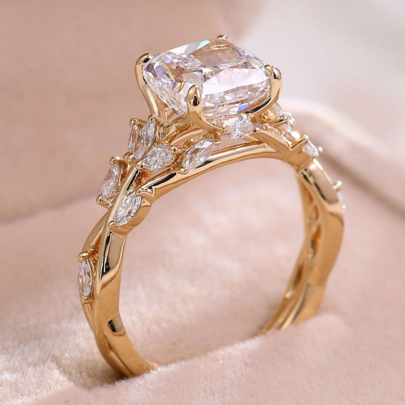 Anelli in Oro Giallo 18K con Diamanti D VS1 da 2,5 Carati, Taglio Cushion Creato in Laboratorio, Design Unico, Gioielli da Donna per Anniversario
