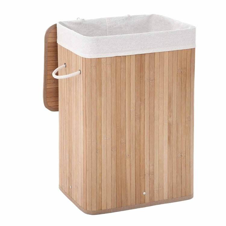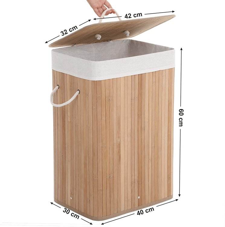 Hot Sale Custom Collapsible Canvas Dirty Clothes Storage Bamboo Laundry Hamper Basket With Detachable