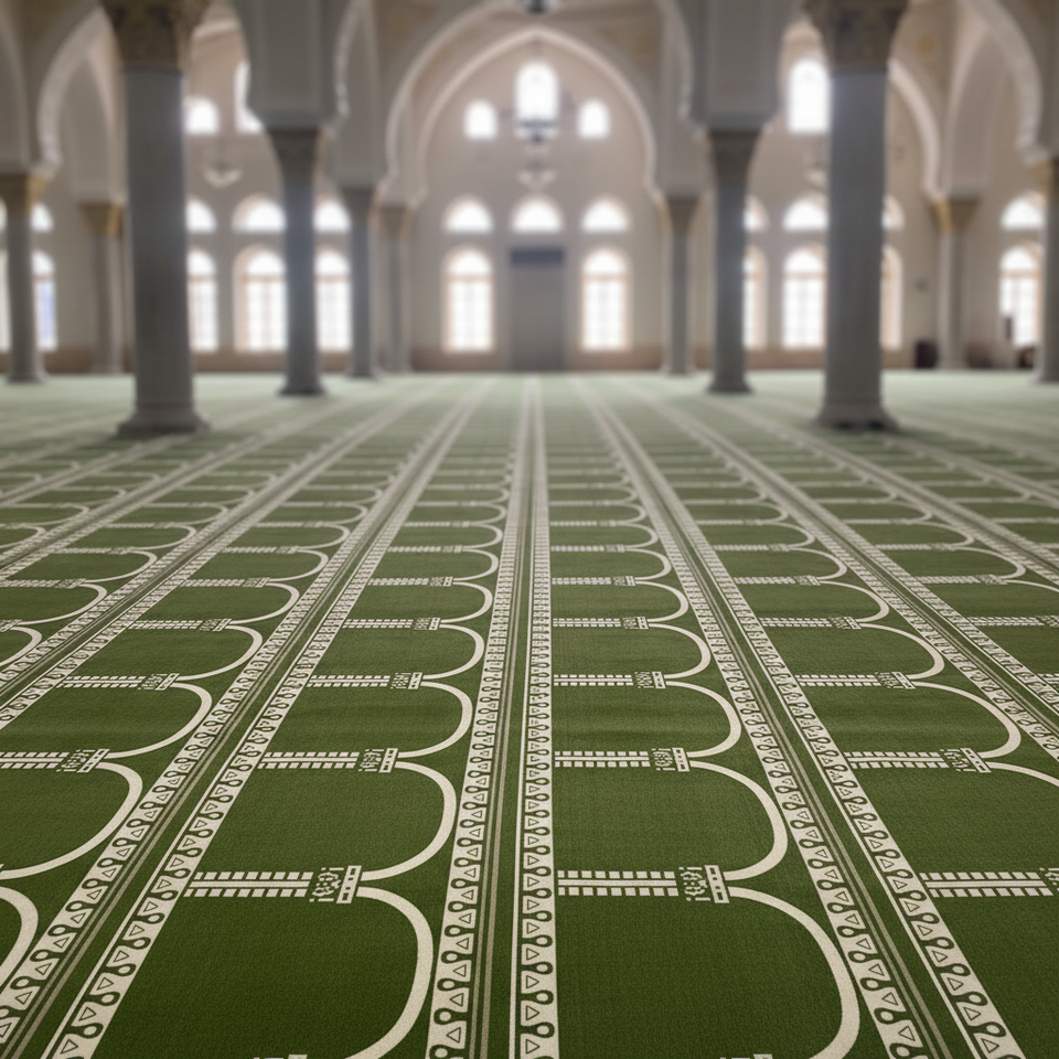 Tappeto per Moschea Personalizzato Insonorizzato 100% Poliestere Ecologico Ignifugo Antiscivolo Tappetino da Preghiera per Interni di Alta Qualità