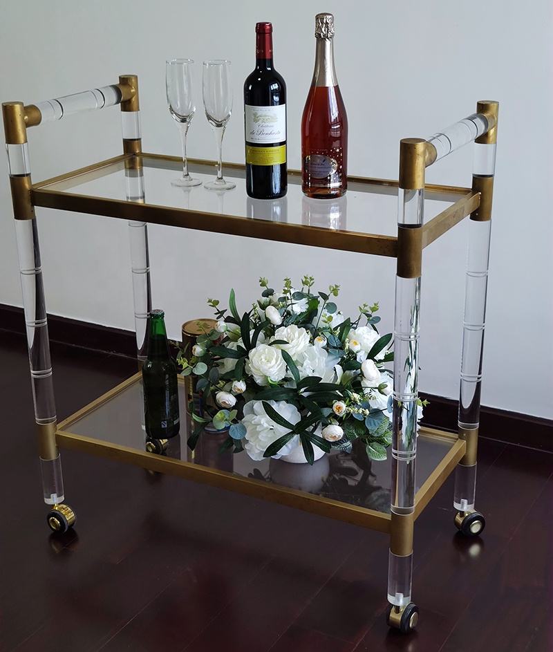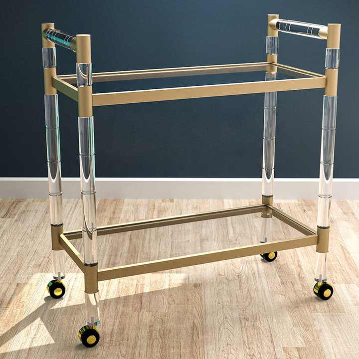 Vendita calda Personalizzabile di Rotolamento del Carrello Liquore Acrilico Carrello Oro Acrilico Bar Carrello