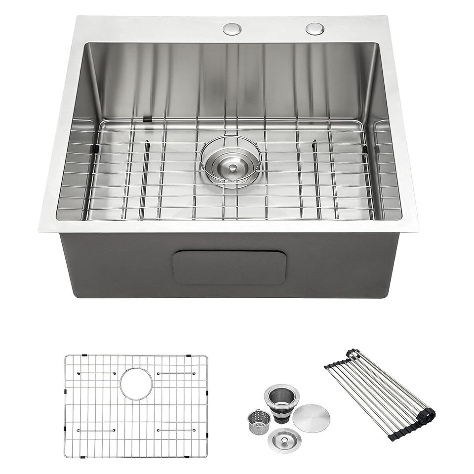 Vendita calda dimensione 25 "fatto a mano Design moderno 304 In acciaio inox Drop-In lavello da cucina per cucina lavanderia Bar