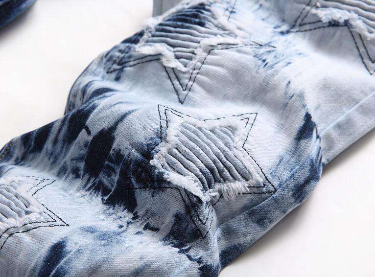 Hot Sale Embroidered Long Pants Trendy Men's Pant With Holes and Stretch Jeans Slim Fit Jeans With Small Legs