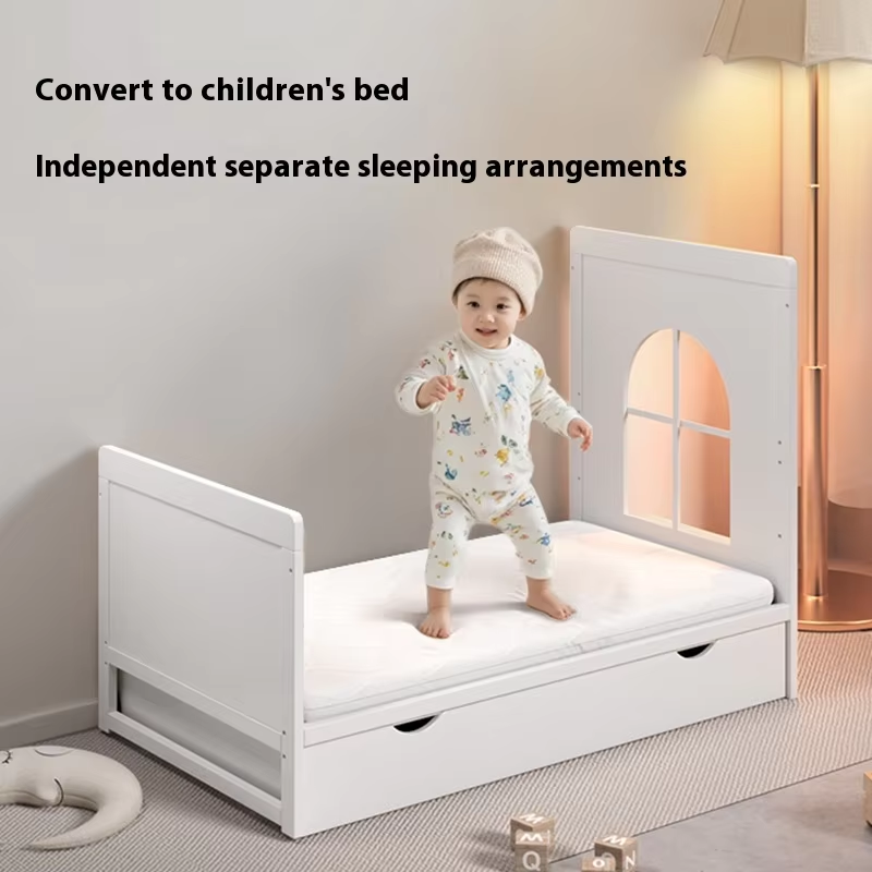 Culla per Neonati in Legno Bianco Stile Europeo 6 in 1 Convertibile, Letto di Lusso per Bambino con Set di Biancheria