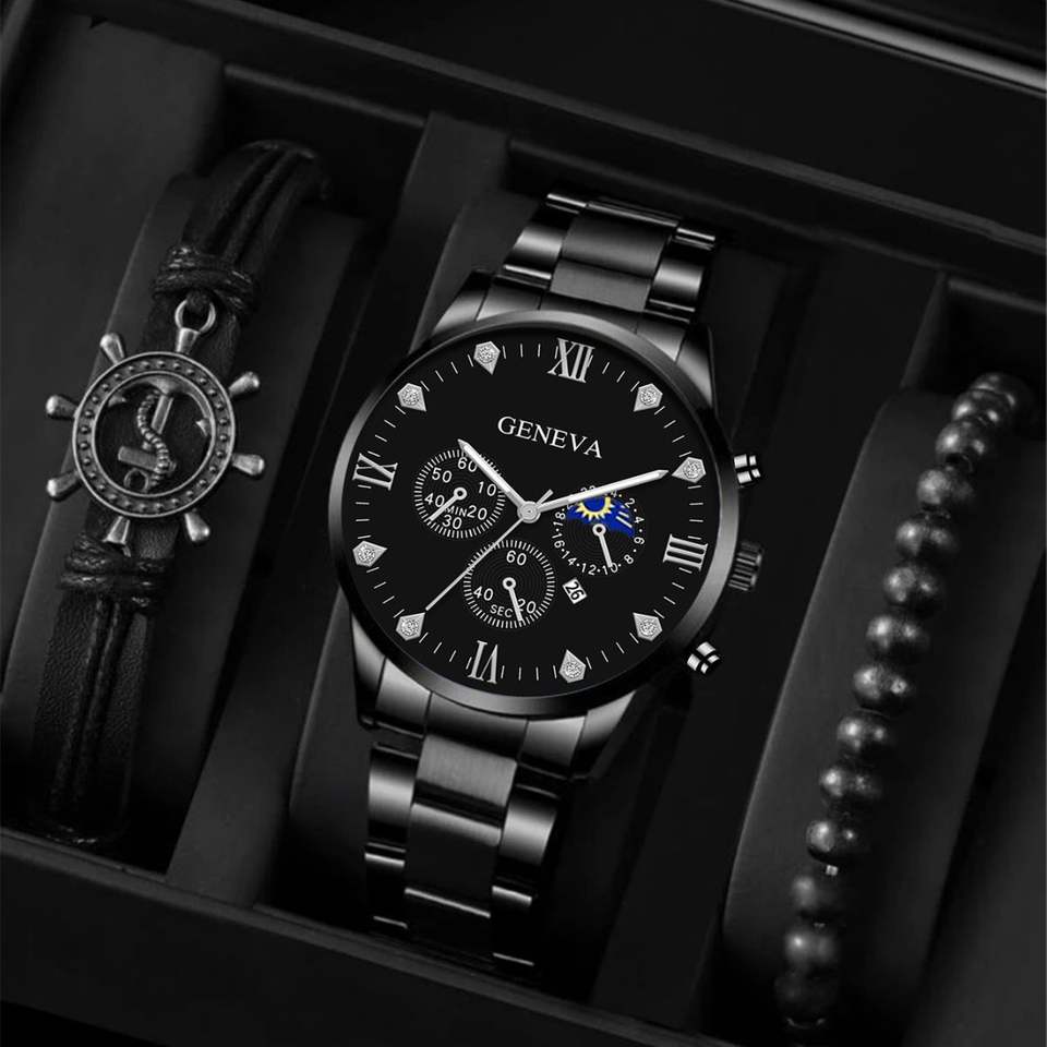 Hot Sale Fashion Men's Steel Band Wristwatch Simple Casual Watch Ship Rudder Bracelet Quartz Watches Set for Men Jewelry Gift