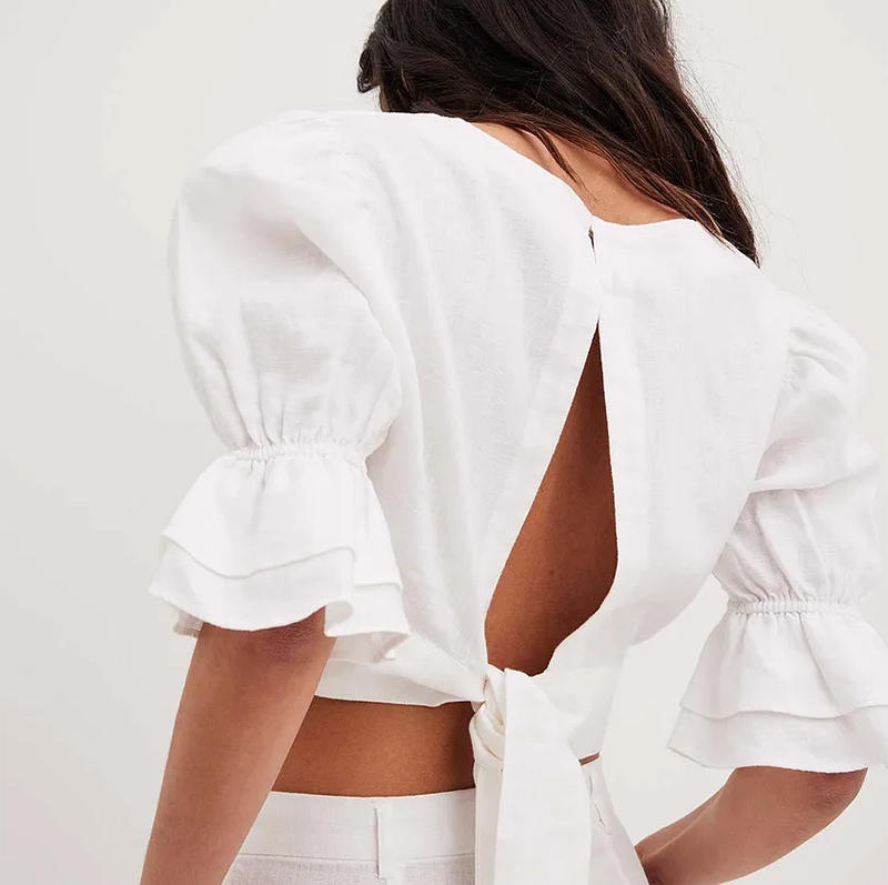 Hot Sale Female Linen Tie Back Top Short Sleeves Open Back Crop Top Women's Hight Quality Top