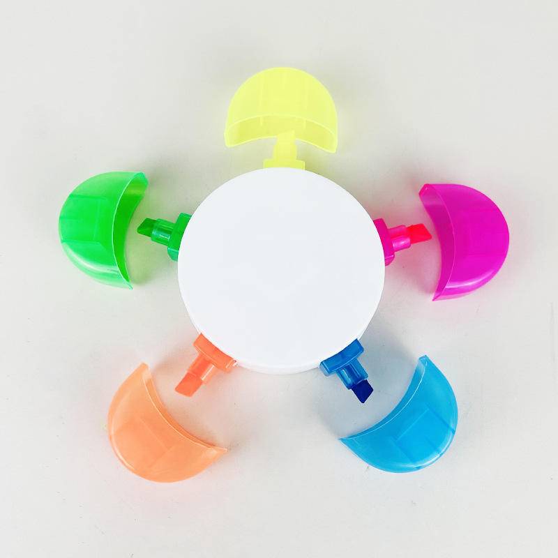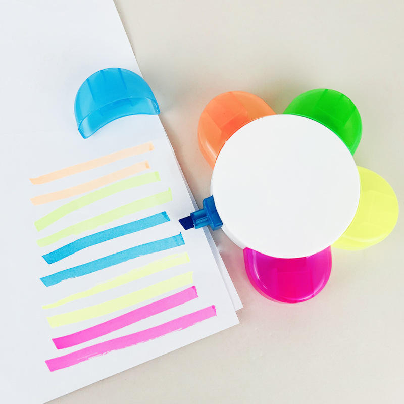 Vendita calda cinque colori girasole penna fluorescente testa inclinata per la marcatura penna colore caramella linea di disegno penna con Logo personalizzato