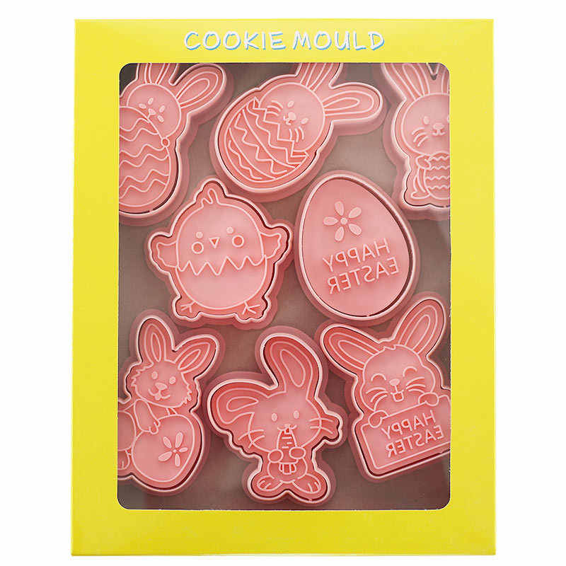 Hot Sale Food Grade Plastic Easter Cookie Cutter Bunny Egg Rabbit Shape Embossing Mold for Party Decorations