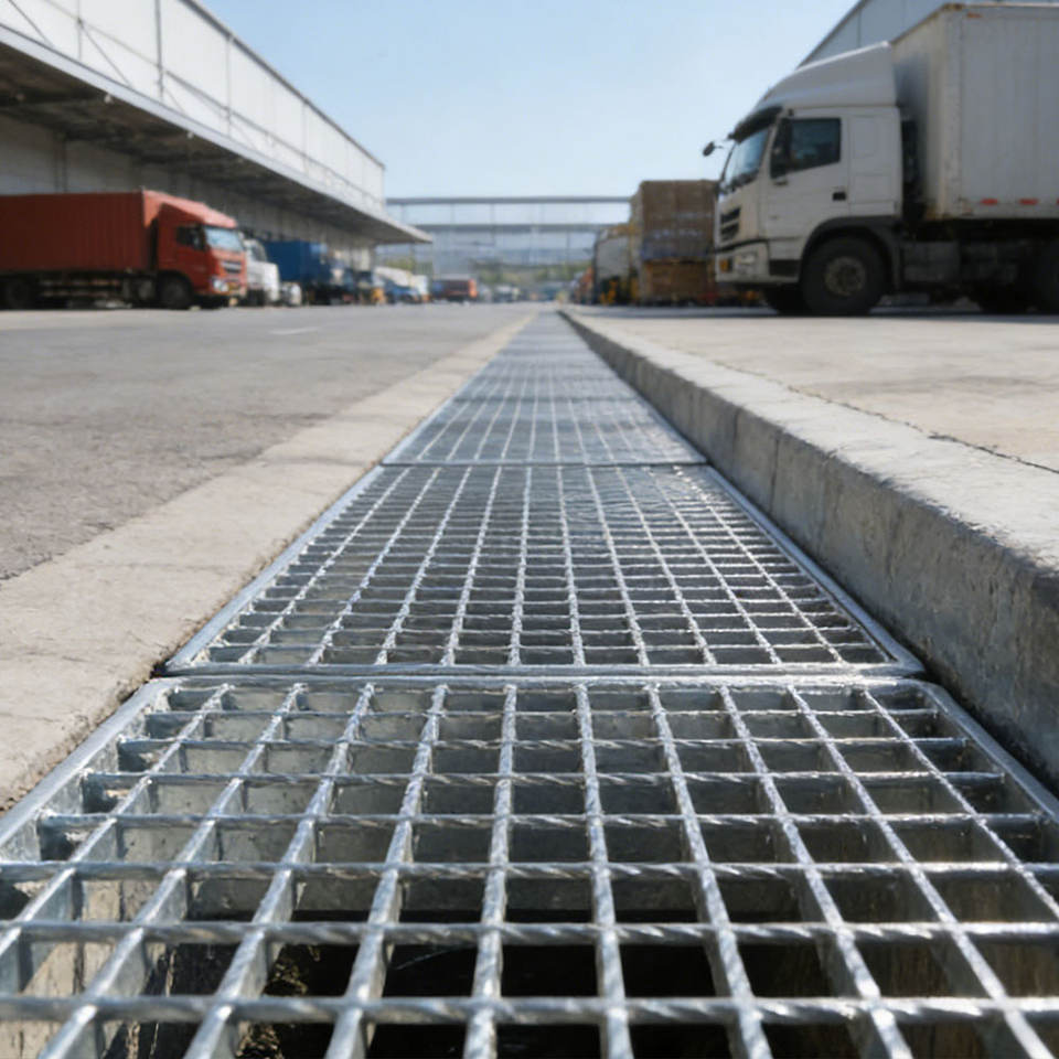 Griglia di Drenaggio in Acciaio Zincato per Carichi Pesanti, Canale di Scolo per Progetti Industriali e Municipali