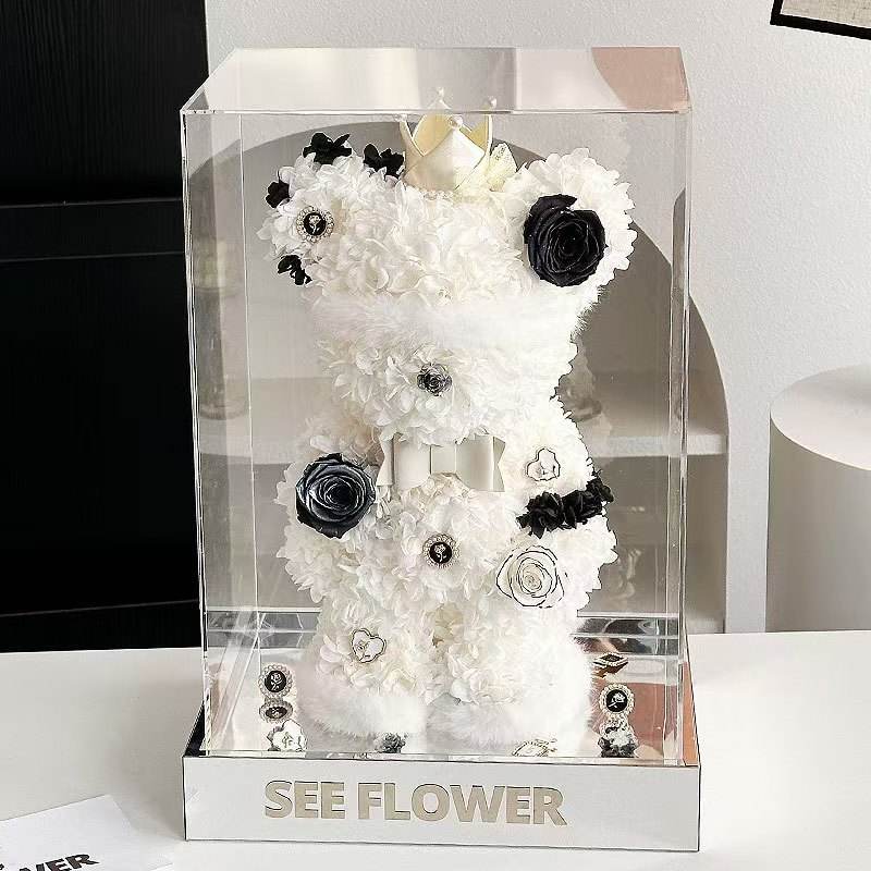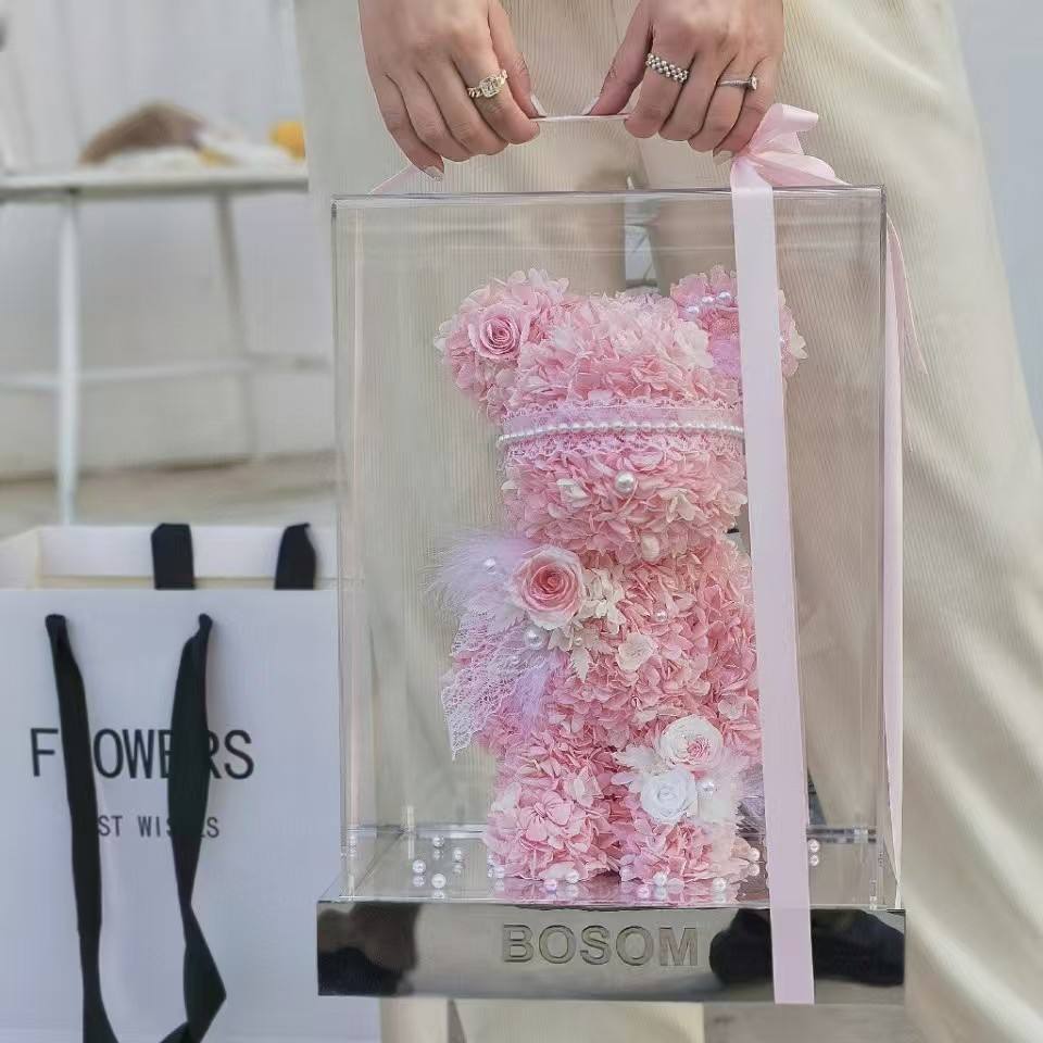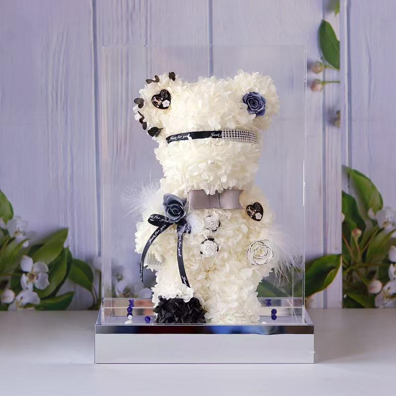 Orsetto di rose stabilizzate in offerta speciale per laurea, Ringraziamento, compleanno, Natale, San Valentino - Fiori eterni