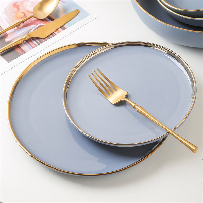 Hot Sale Glaze Nordic Style Ceramic Tableware Plate Dish Luxury Tableware Sets Porcelain Matt Plates Restaurant Dinnerware Set