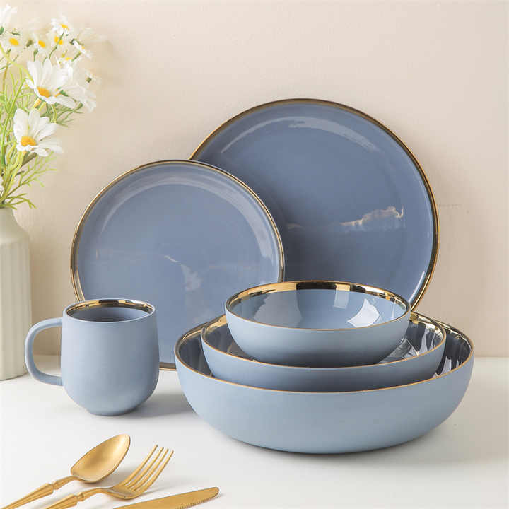 luxury tableware sets porcelain matt dinnerware set with gold rim
