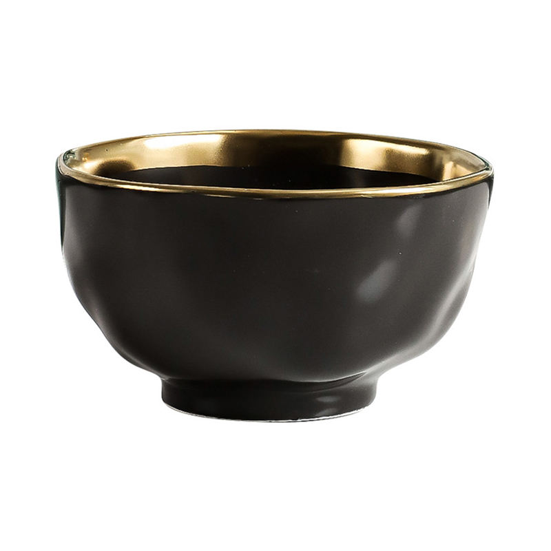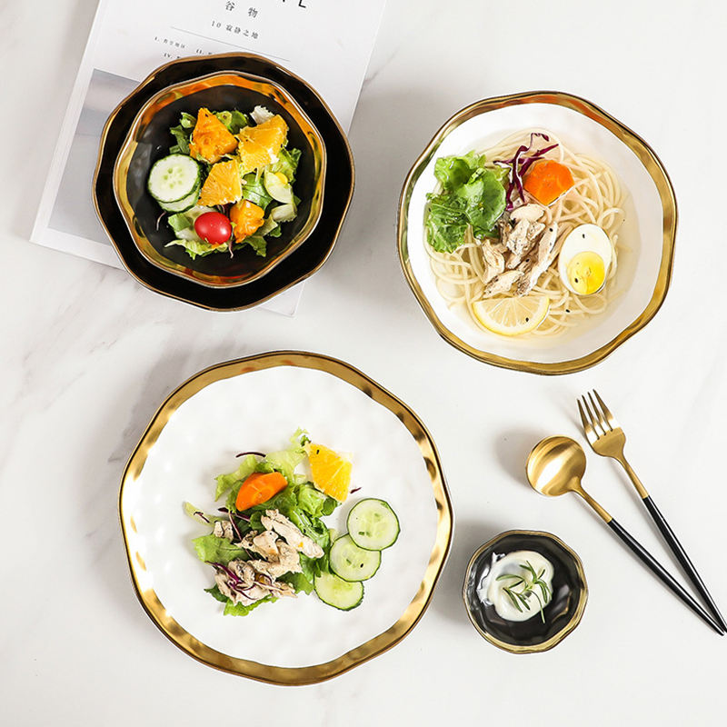 Vendita calda Ciotola rotonda in porcellana con cerchio in oro nero e bianco Deluxe Set di stoviglie per la casa Set di vino da caffè