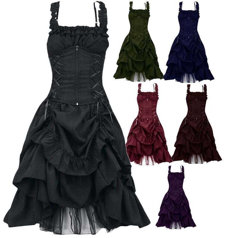 Hot Sale Gothic Ball Skirt Dress for Women Vintage Goth Steampunk Retro Princess Halloween Costume Sleeveless TV Movie
