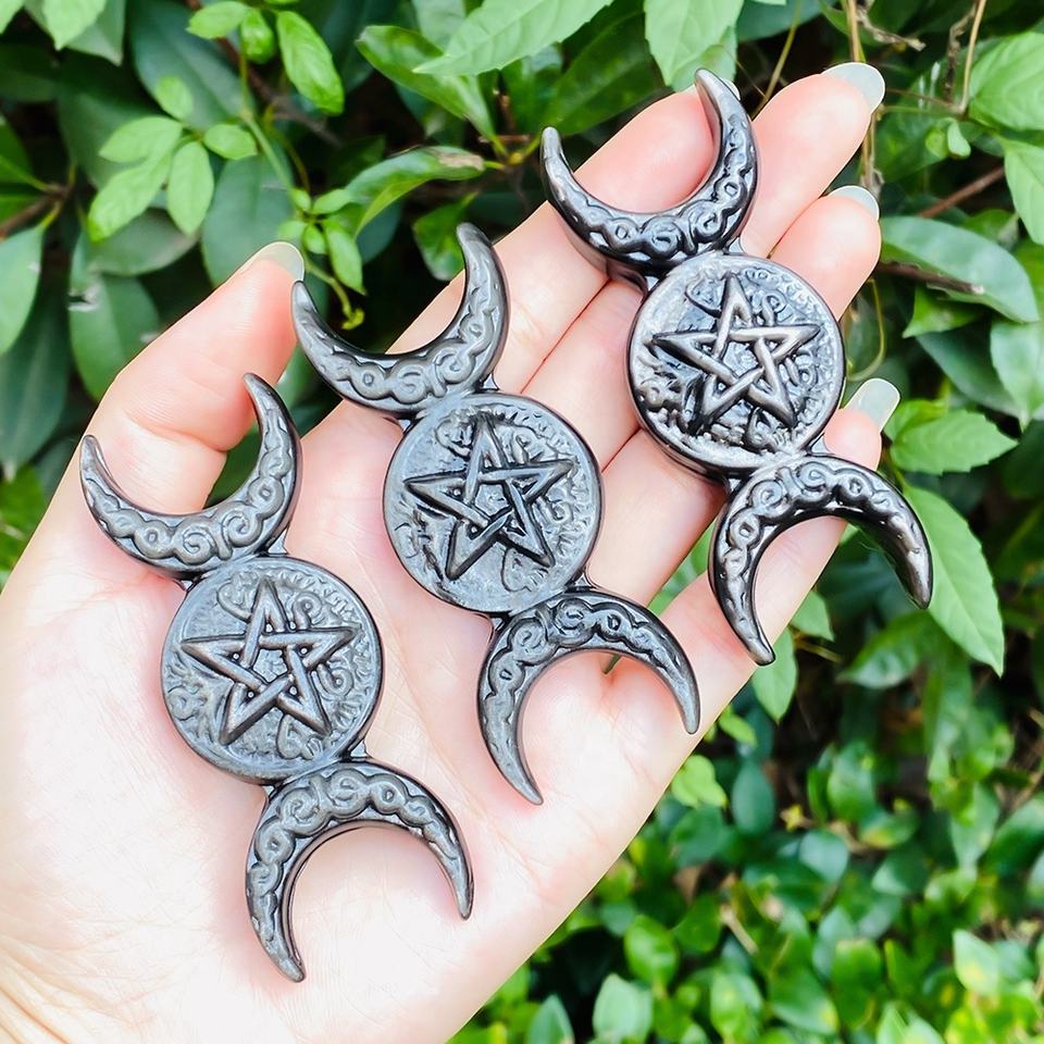 Hot Sale High Quality Crystal Crafts Healing Stone Carved Silver Obsidian Gold Obsidian the Sun Moon and Stars for Decoration