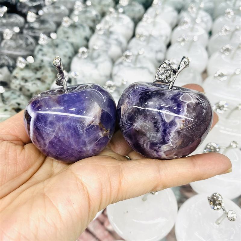 Hot Sale Home Wedding Christmas Decoration Dream Amethyst Carved Crystal Apple for Gift Fengshui