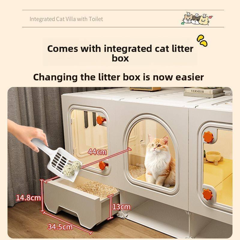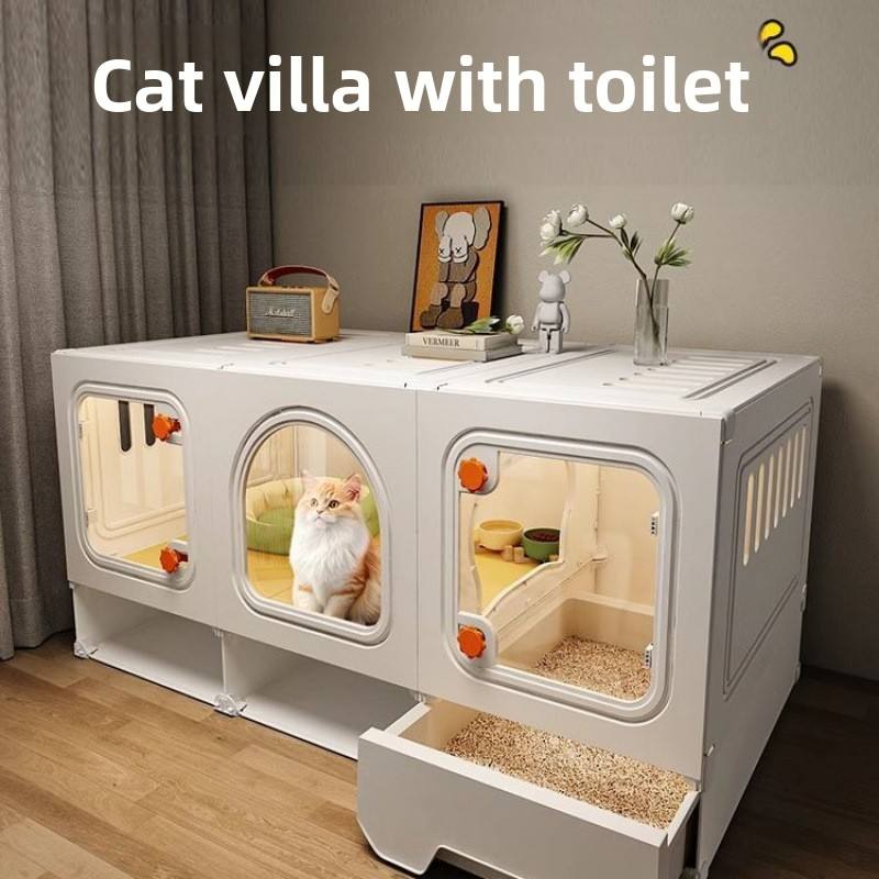 Gabbia per Gatti da Interno con Toilette, Design Monolocale con Chiusura a Pulsante, Ideale per Piccoli Appartamenti