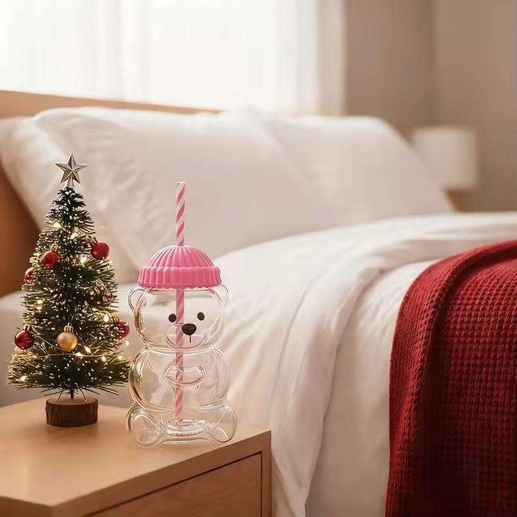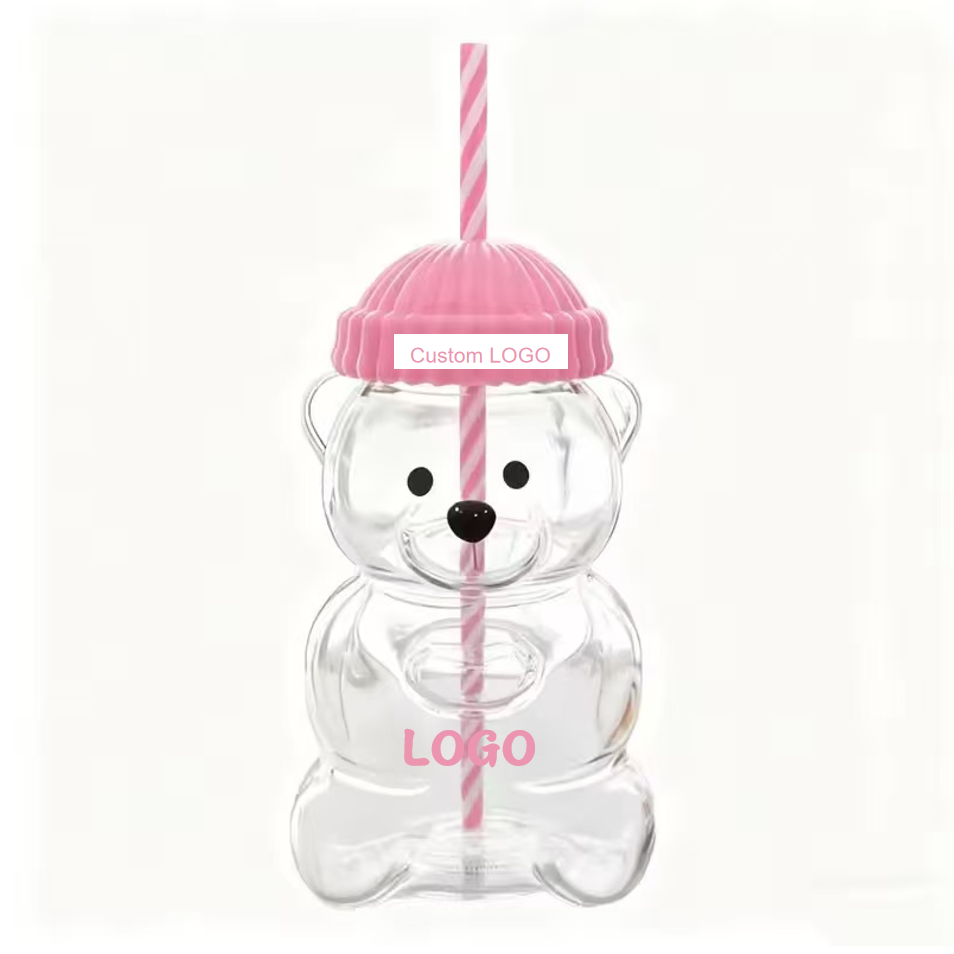 Nome:Bicchiere in Vetro da 20OZ a Forma di Orsetto con Coperchio e Cannuccia