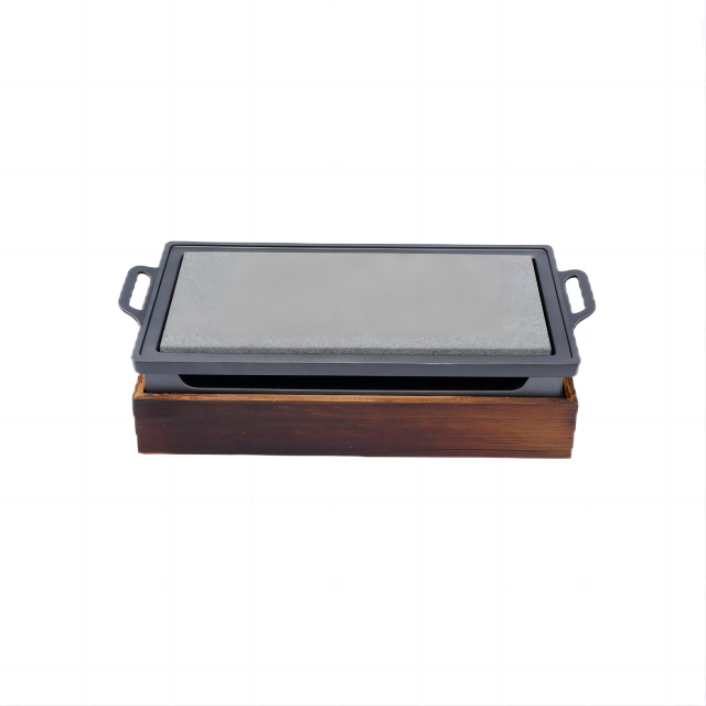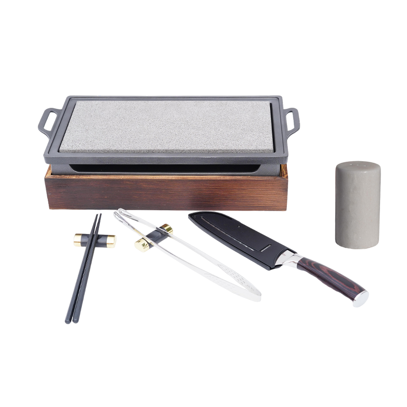 Offerta Speciale JINXING KB06 Set di Piastre in Pietra Lavica Naturale Antiaderenti per Bistecche con Supporto in Legno per Barbecue