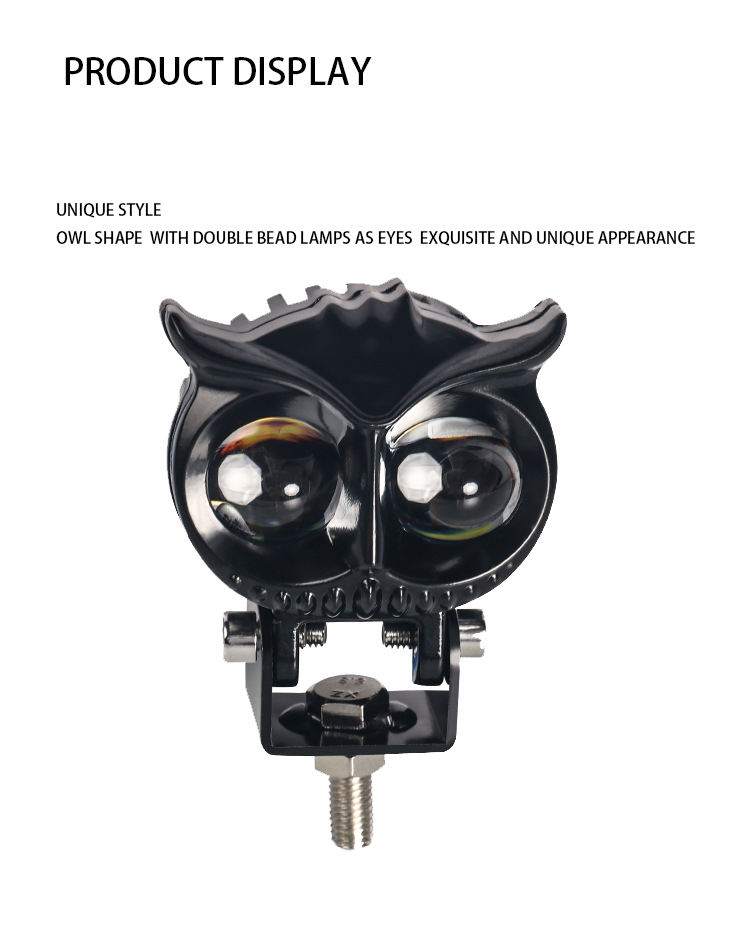 Faro Ausiliario LED per Moto Juchuang Design a Gufo Bicolore 18W DC 12-80V Impermeabile 30000 Ore