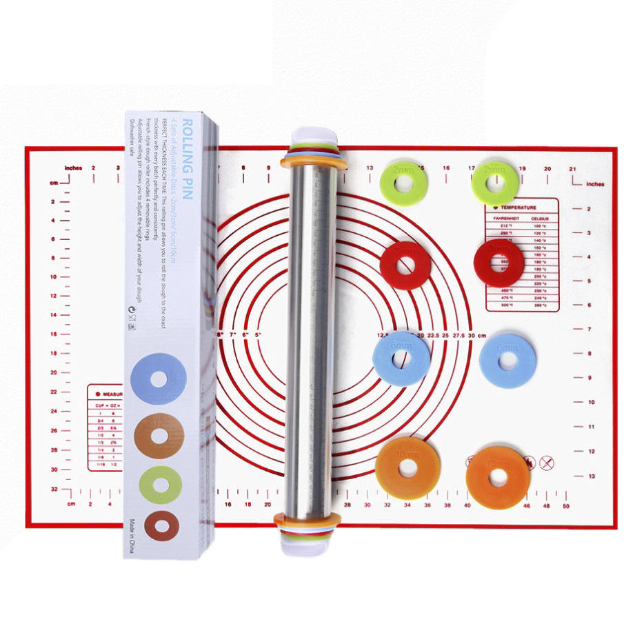 Hot Sale Kitchen Supplies Stainless Steel Rolling Pin Adjustable Thickness Eco-Friendly Dough Pastry Baking Metal Mold Baking
