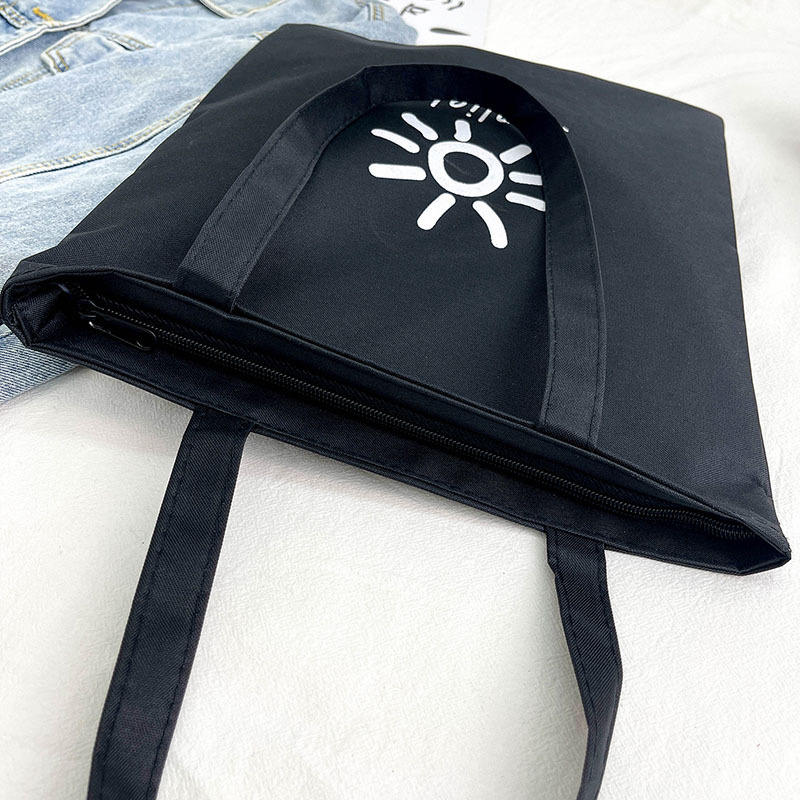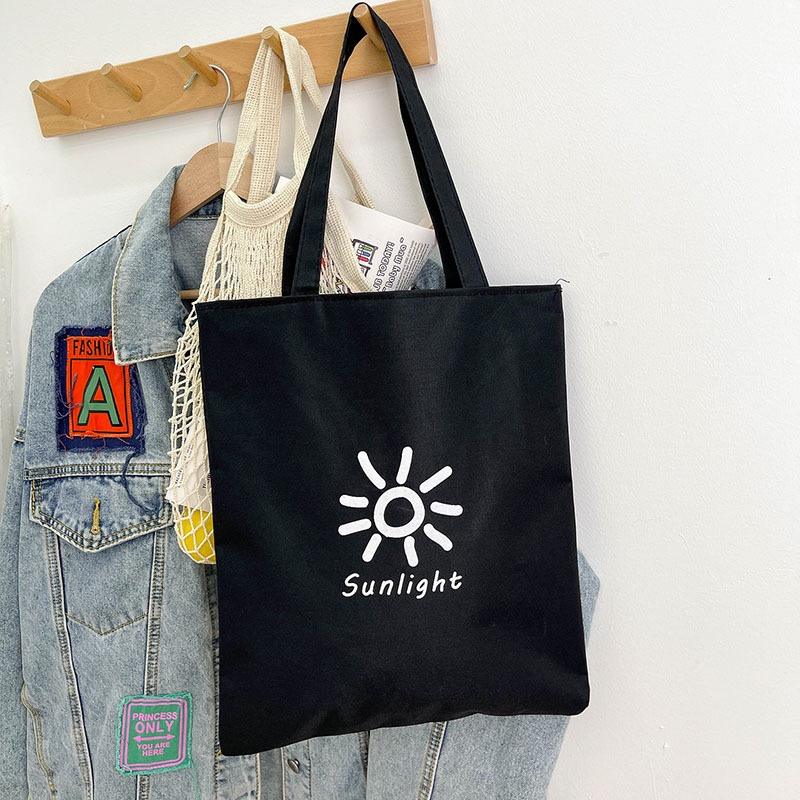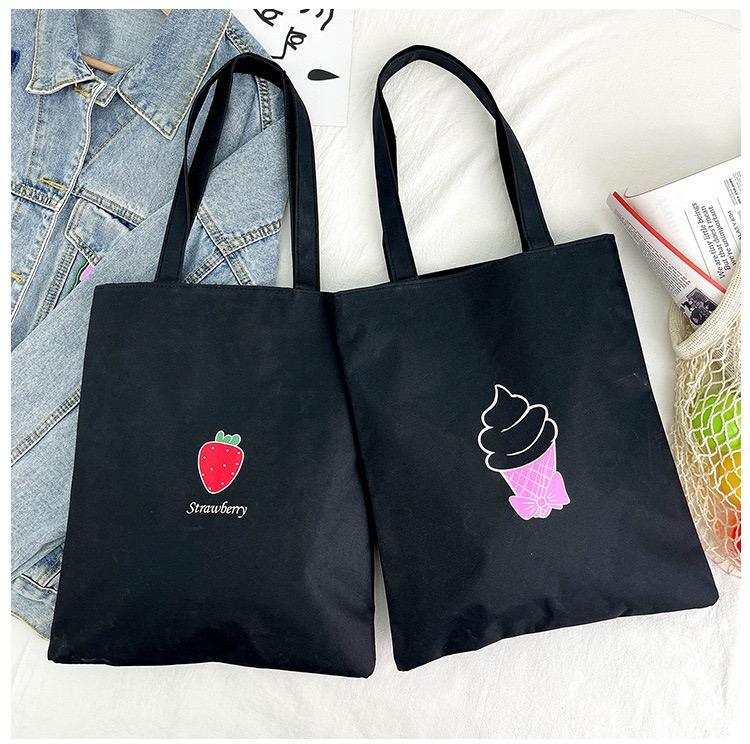 Nome del prodotto:Borsa Tote in Cotone Canvas Nera, Semplice, Carina, a Spalla, di Grande Capacità