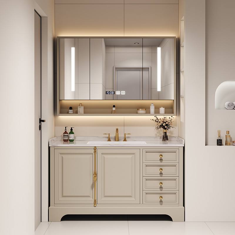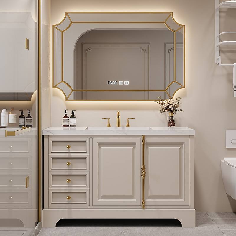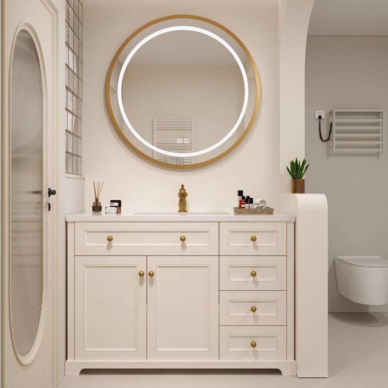Vendita calda LED pannello a specchio con lavandino bagno OEM supportato Hotel doccia bagno mobiletto con un bacino senza soluzione di continuità