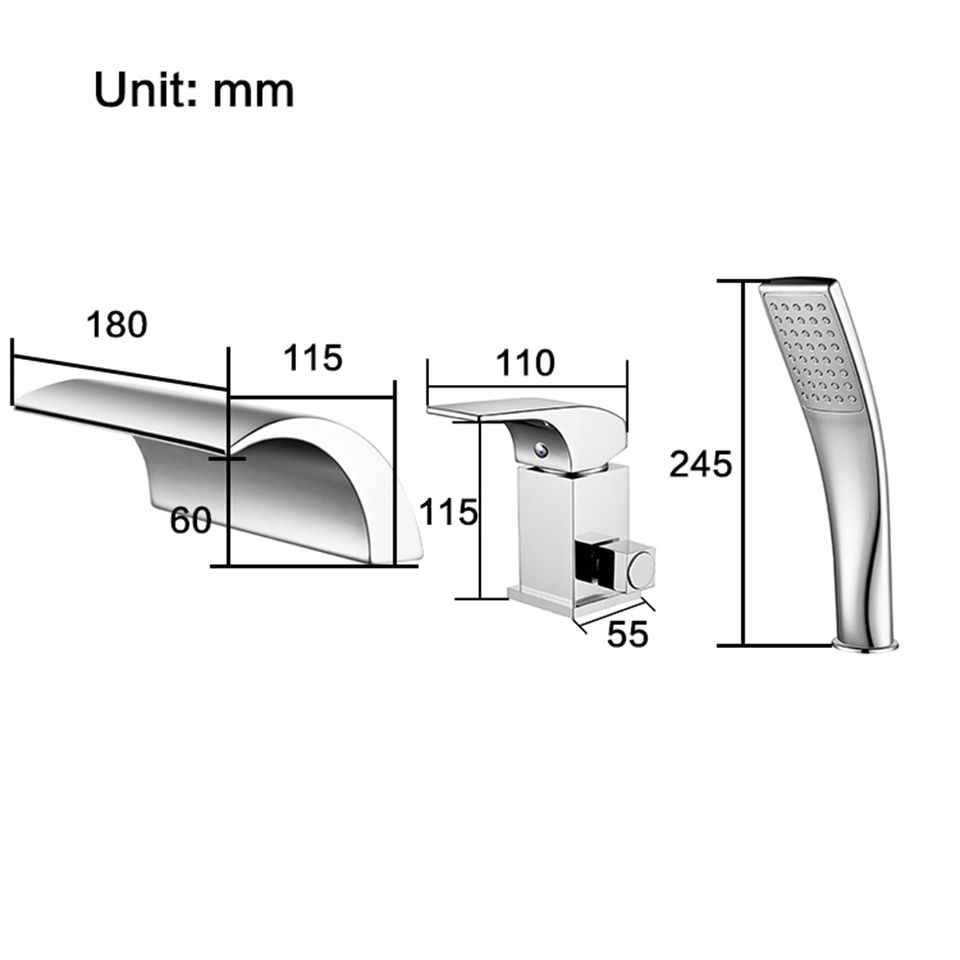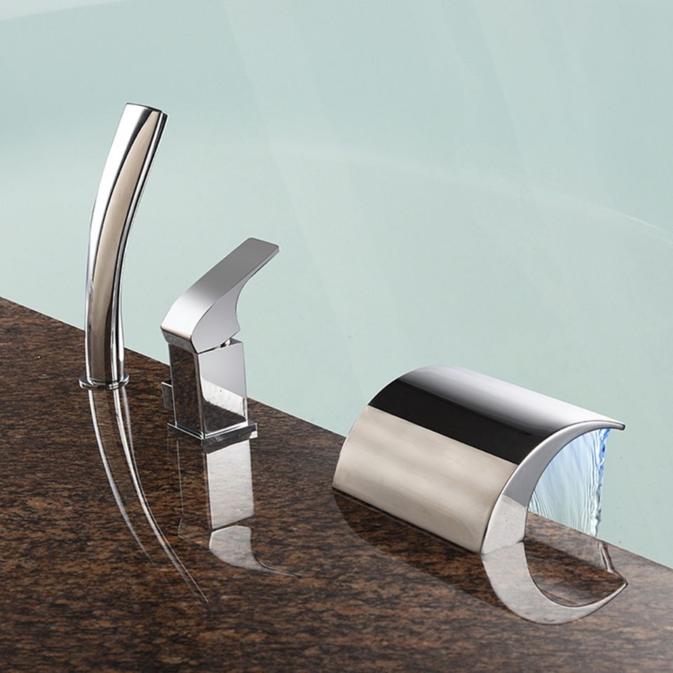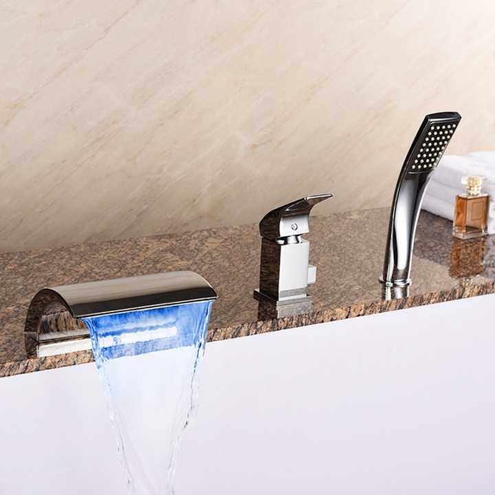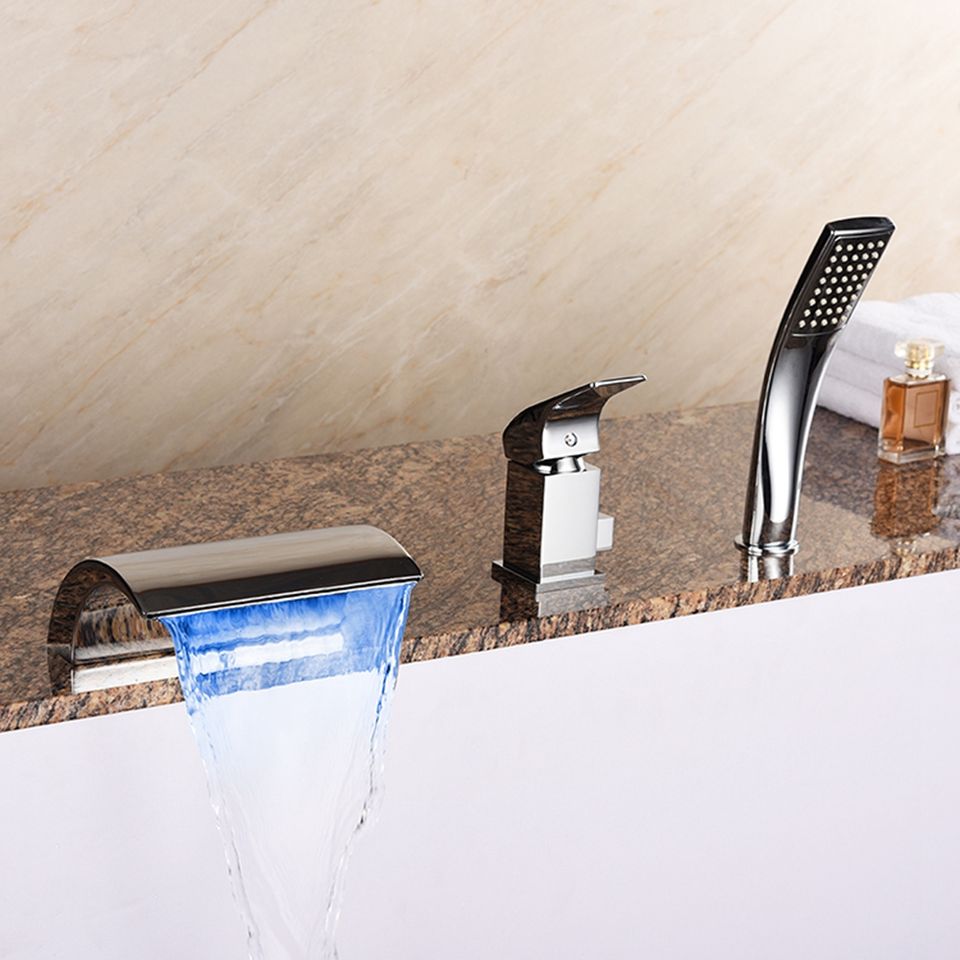 Vendita calda Ha Condotto La Conversione del Colore 3 Fori Cascata Becco Deck Mounted Vasca Da Bagno Doccia Rubinetto