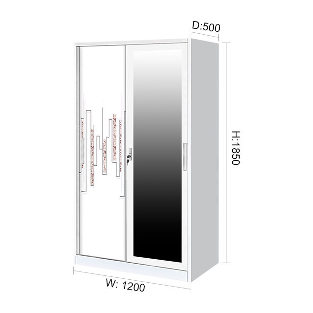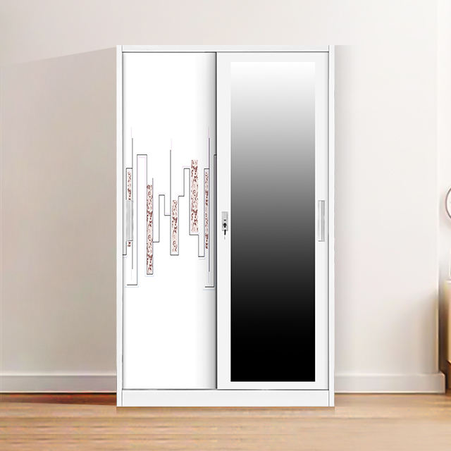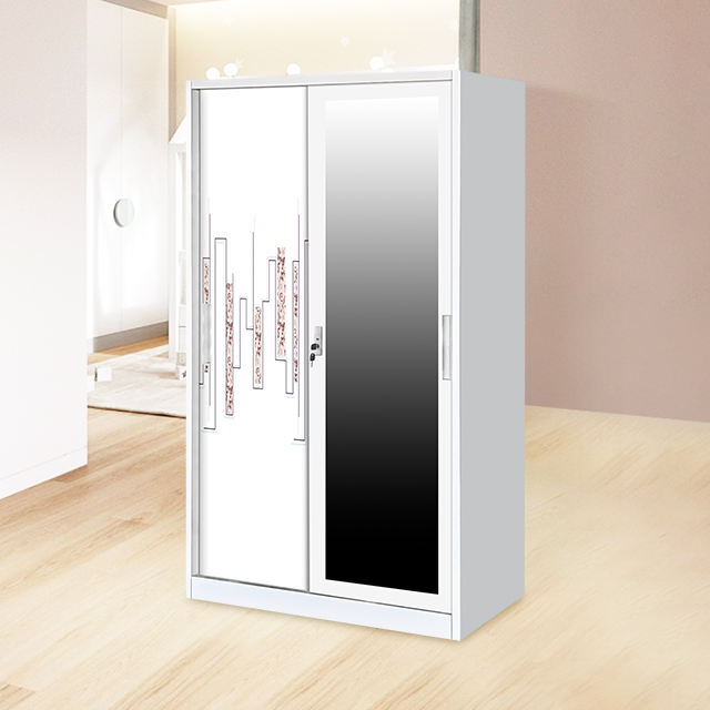 Hot Sale Lemari Sliding Besi Metal Bedroom Wardrobe with Mirror