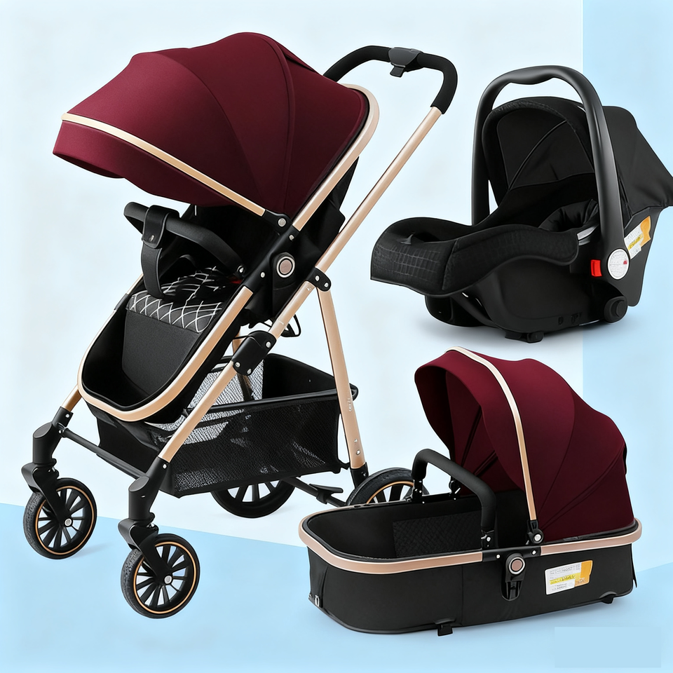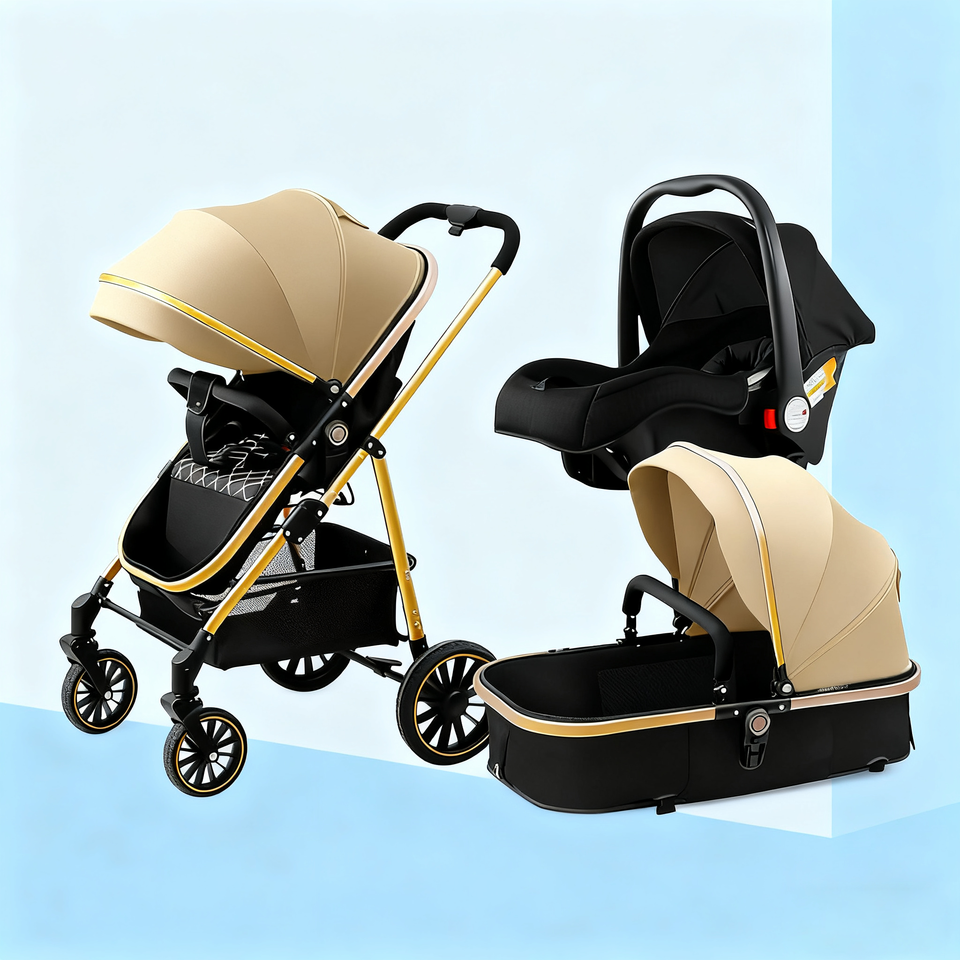 Vendita calda di lusso tre in uno ad alta vista passeggino per bambini auto a spinta con neonato cotone Pad culla caratteristica