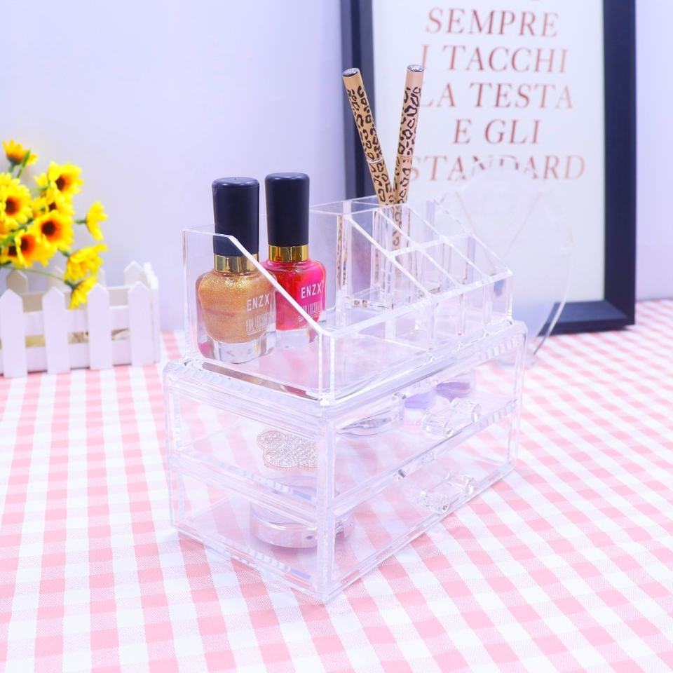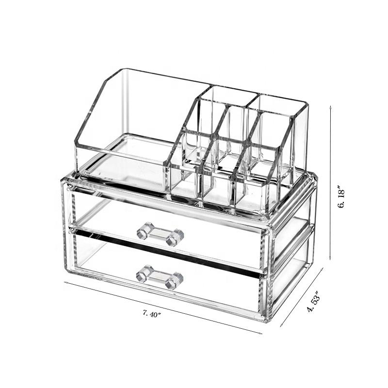 Vendita calda Make Up 2 Cassetto Dell'organizzatore di Immagazzinaggio Box Acrilico di Trucco Dell'organizzatore