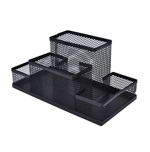 Vendita calda del Metallo della maglia Scuola Studenti Ufficio Scrivania Organizzatore Penna Scatola Di Immagazzinaggio Titolare Cancelleria Nero