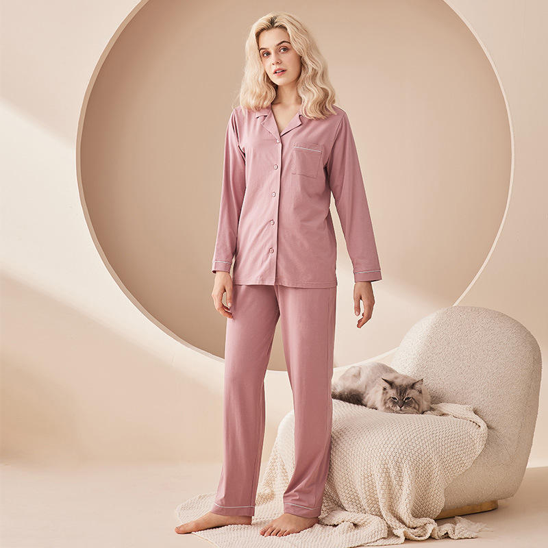Vendita calda pigiama da donna in bambù modale manica lunga abbigliamento da notte invernale taglia XL con stampa modello pigiama
