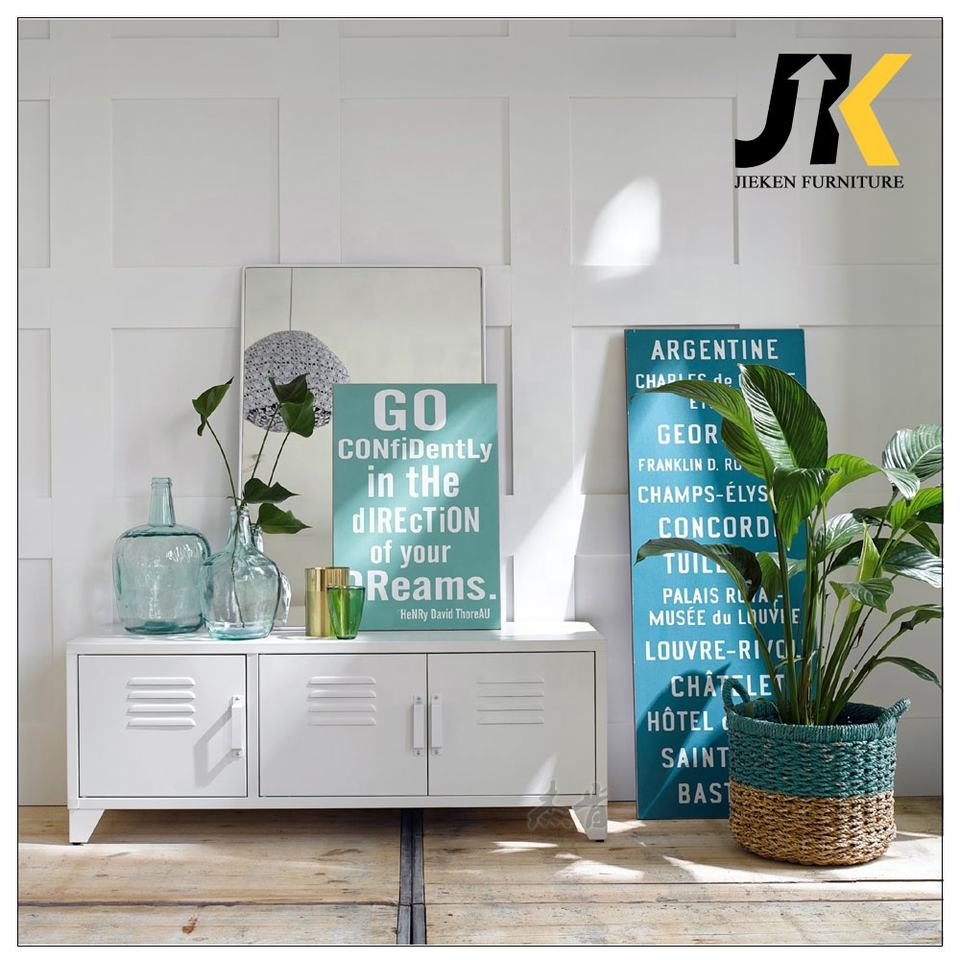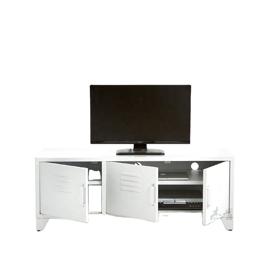 Mobile TV in Metallo dal Design Moderno con Gambe Lunghe, Armadietti Portaoggetti, Console Multimediale per Soggiorno, Camera da Letto, Hotel o Appartamento