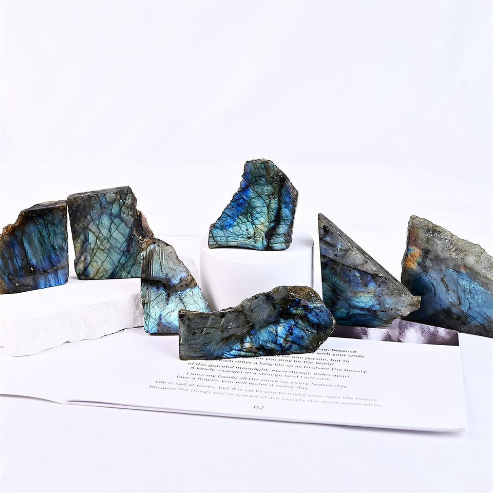 Vendita calda Natrual taglio di cristallo curativo fatto a mano artigianato pietra Labradorite lastra grezza per gioielli materiali