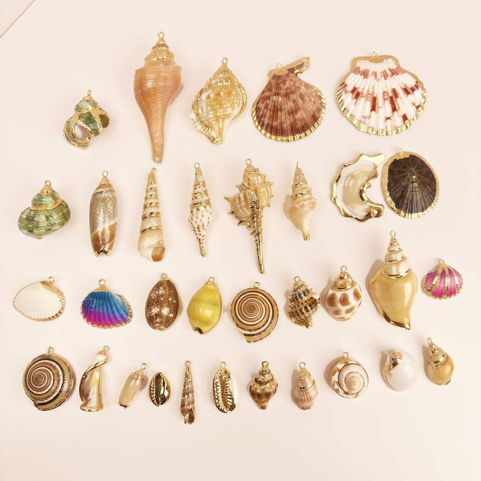 Orecchini e Collana Oversize con Ciondolo in Conchiglia Naturale Placcato Oro, Accessori Fai-da-Te