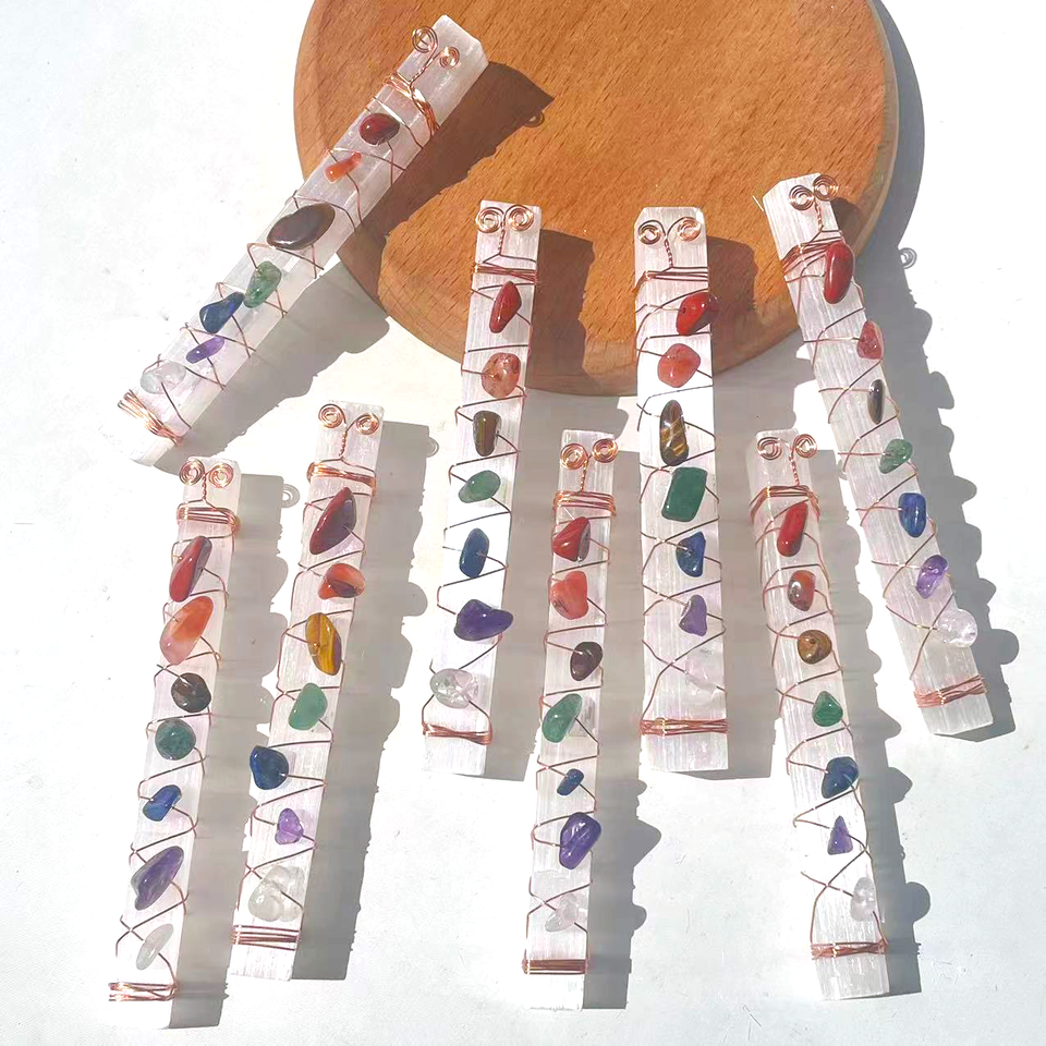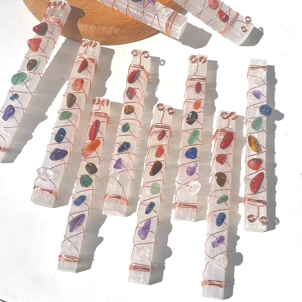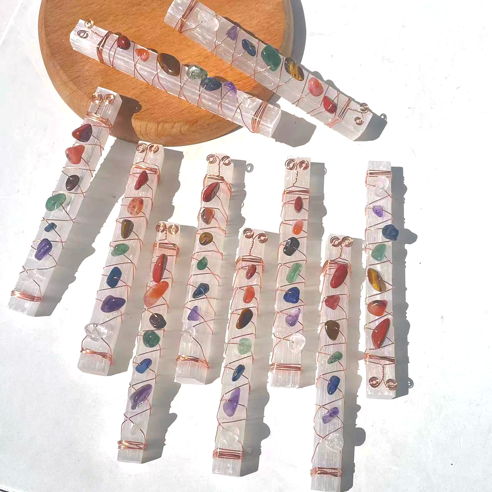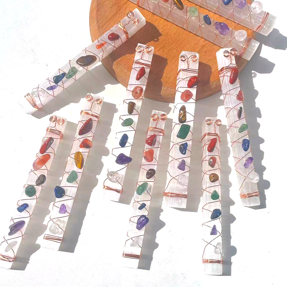 Vendita Calda: Pietra Naturale di Selenite per Chakra, 7 Pietre Energetiche per Guarigione, Bastoncini Laser per i Sette Chakra