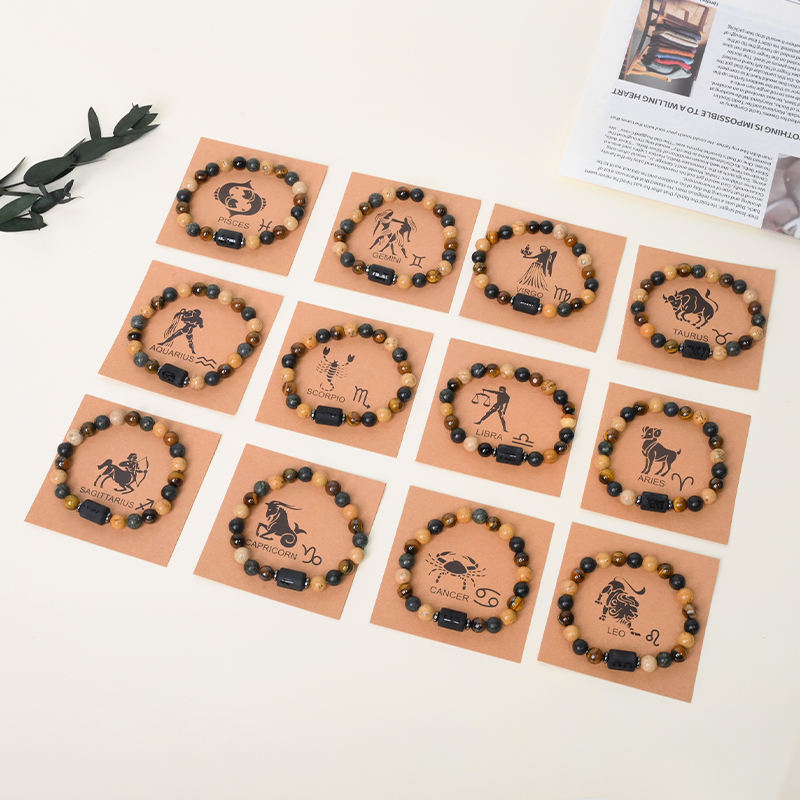 Hot Sale Natural Stone Beaded Bracelets Energy Crystal Jewelry 12 Zodiac Crystal Bracelet with Cards