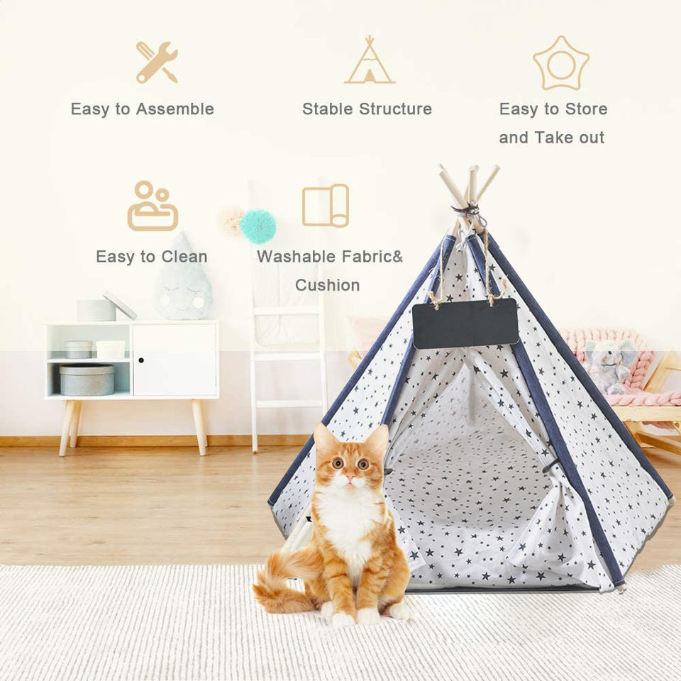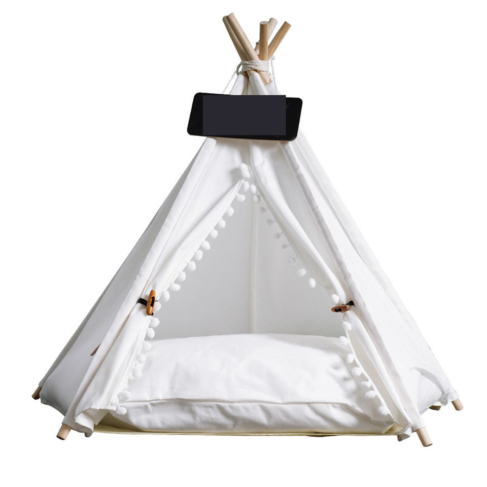 Vendita calda natura antivento Pet House Luxury Fashion Dog Cat Bed cotone lino Pet Teepee tenda con tappetino per animali domestici con pino
