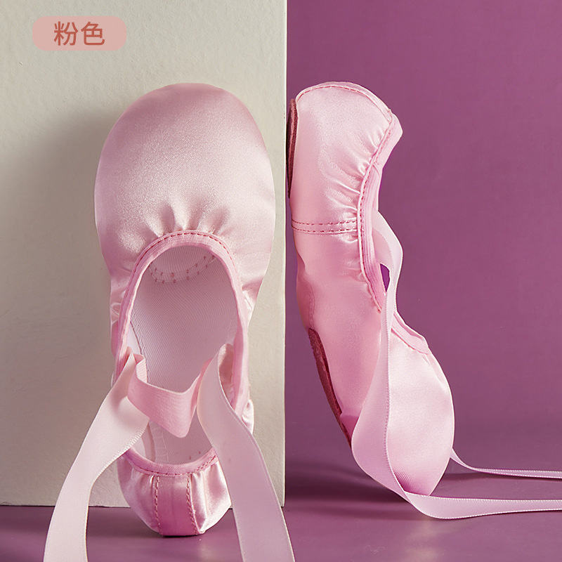 Nome ITME:Scarpette da ballo in raso morbido rosa satinato oro viola per bambini