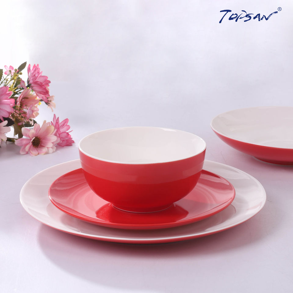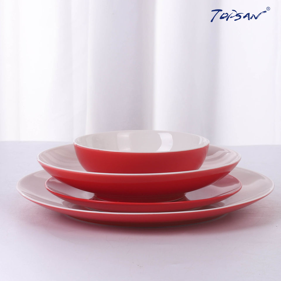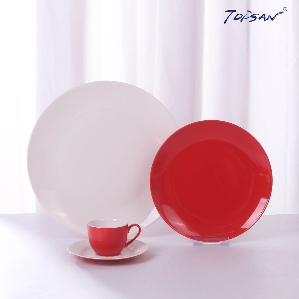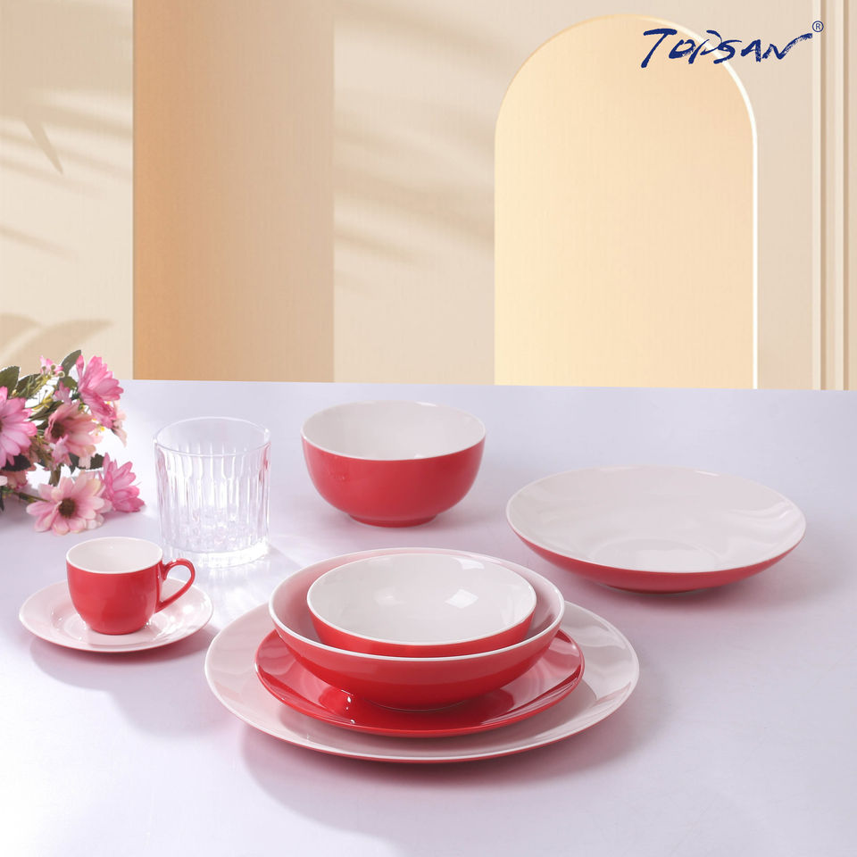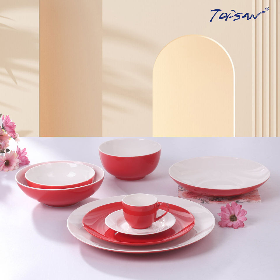 Offerta Speciale: Set Piatti, Ciotole e Tazze da Tè/Caffè con Piattini in Porcellana Rossa, Design Capodanno, per Ogni Occasione, in New Bone China