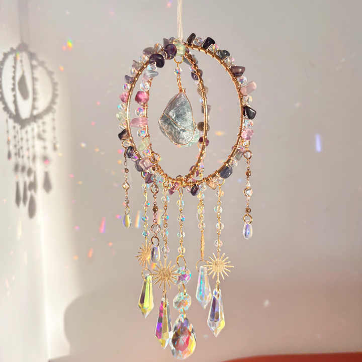 Hot Sale Original Stone Winding Spherical Crystal Crafts Natural Gravel Sun Catcher Rainbow Pendant Wind Chime Gift for Females