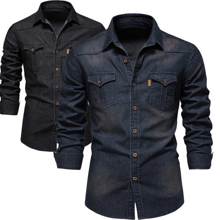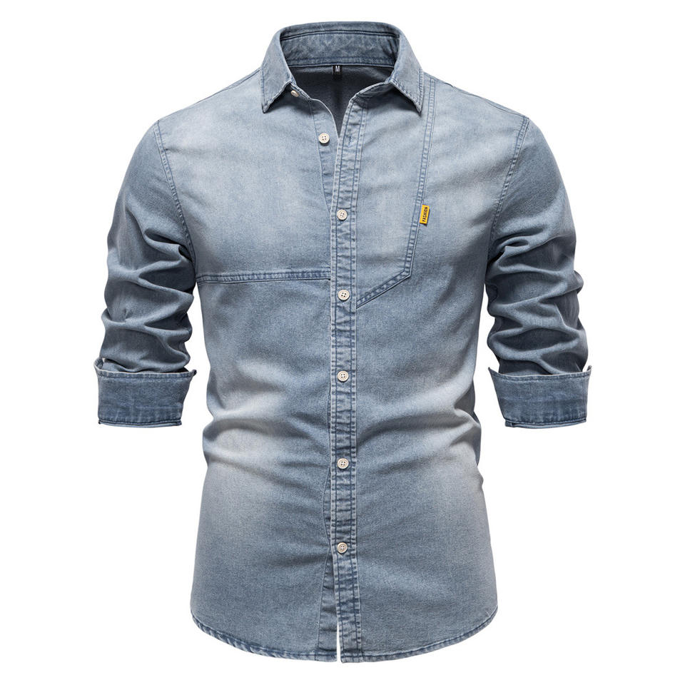 Camicia di Jeans a Maniche Lunghe per Uomo, Taglie Grandi, Casual in Cotone di Alta Qualità