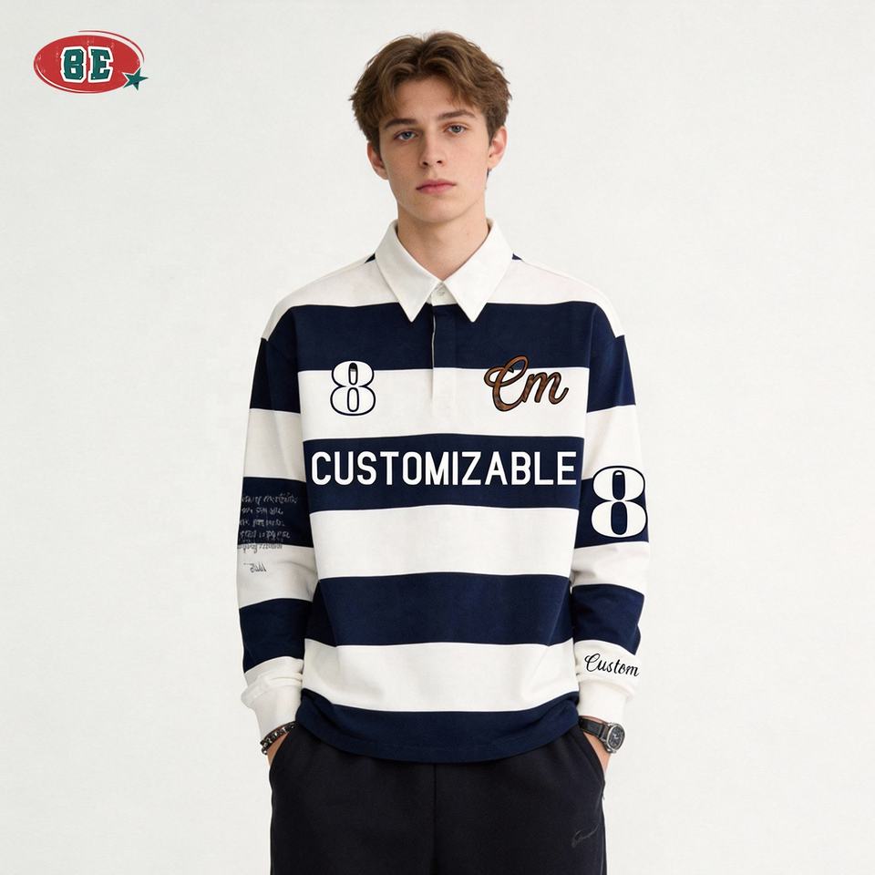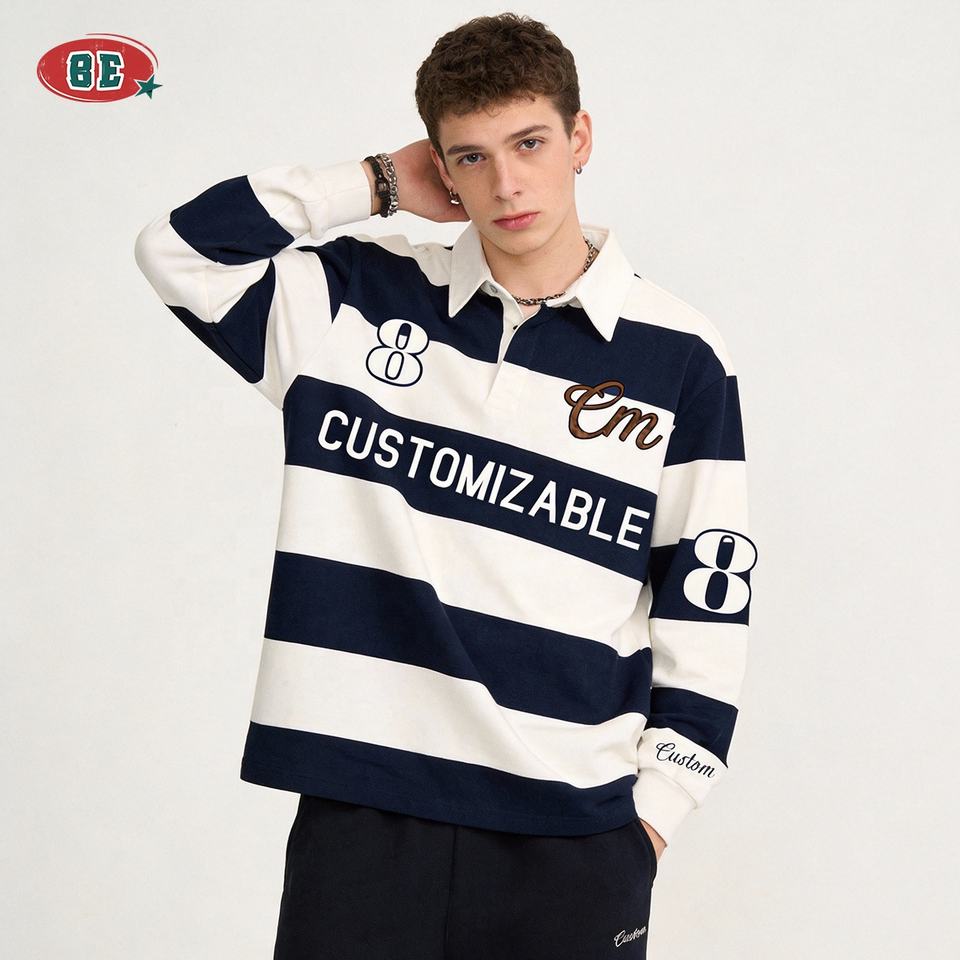 Polo da Uomo Taglie Forti in Maglia a Costine con Logo Ricamato, Manica Lunga, Stile Retrò Vintage, 100% Cotone, Vestibilità Ampia a Righe - Offerta Speciale