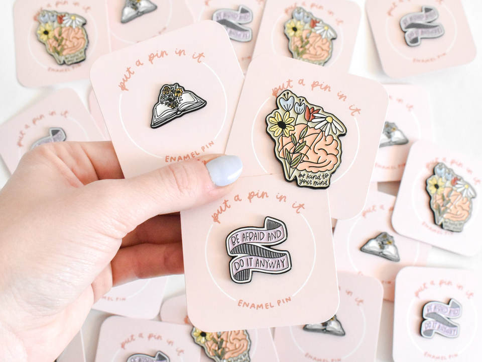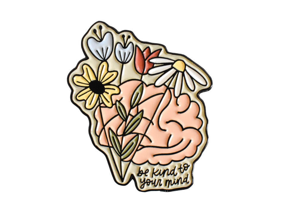 Spilla in Metallo Decorativa con Messaggio Positivo, Vendita all'Ingrosso, Design Cartoon Floreale 'Be Kind to Your Mind', Spilla Smaltata per la Salute Mentale, Regalo per Lei