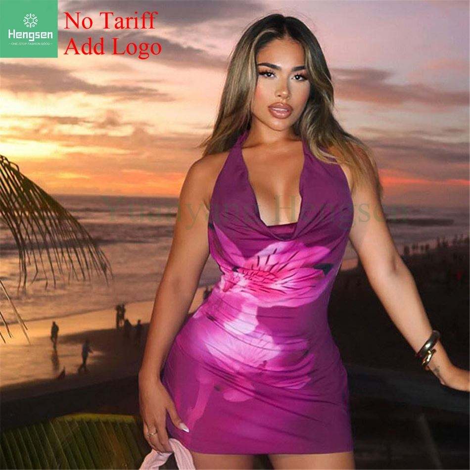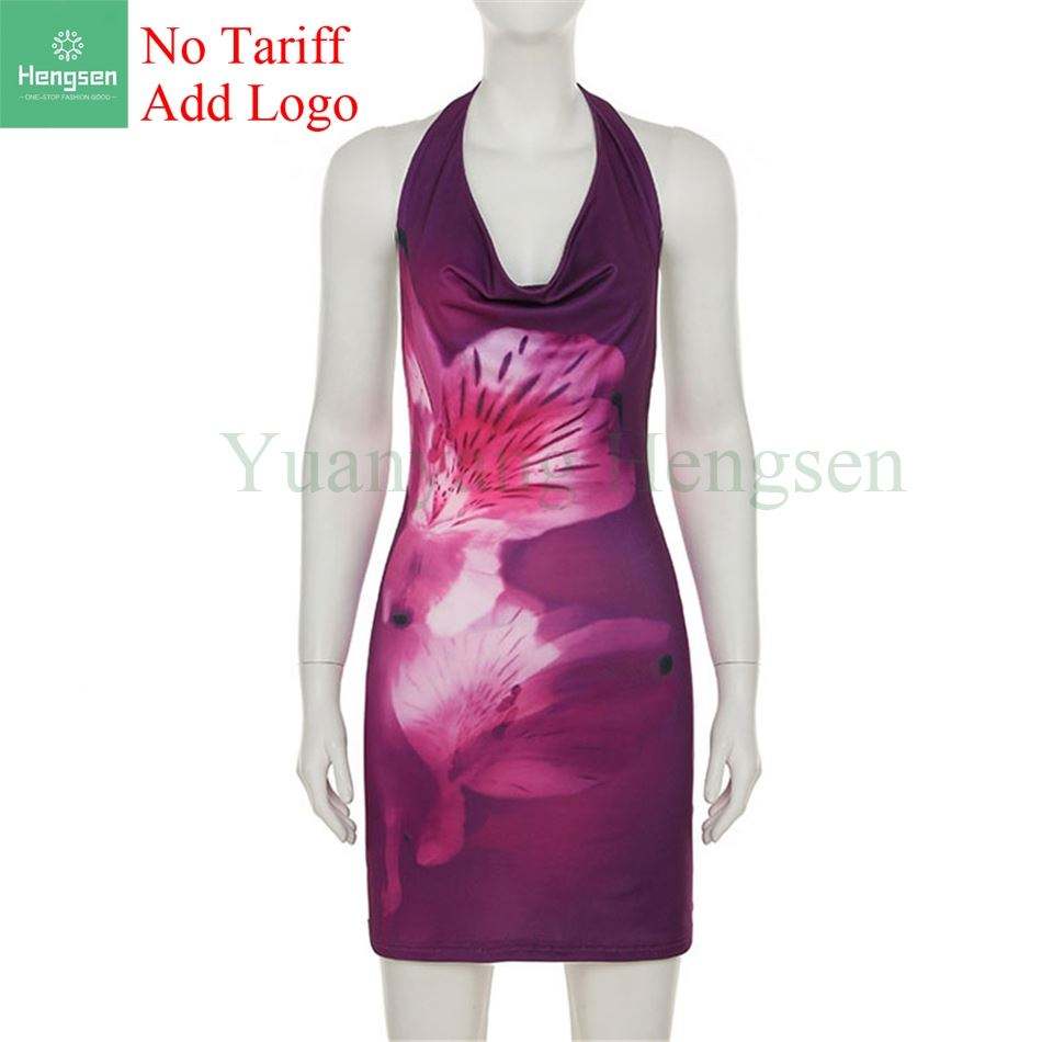 Vendita calda con stampa a schiena alta con motivo a schiena posteriore elegante gonna a pieghe 2023 estivo abbigliamento donna