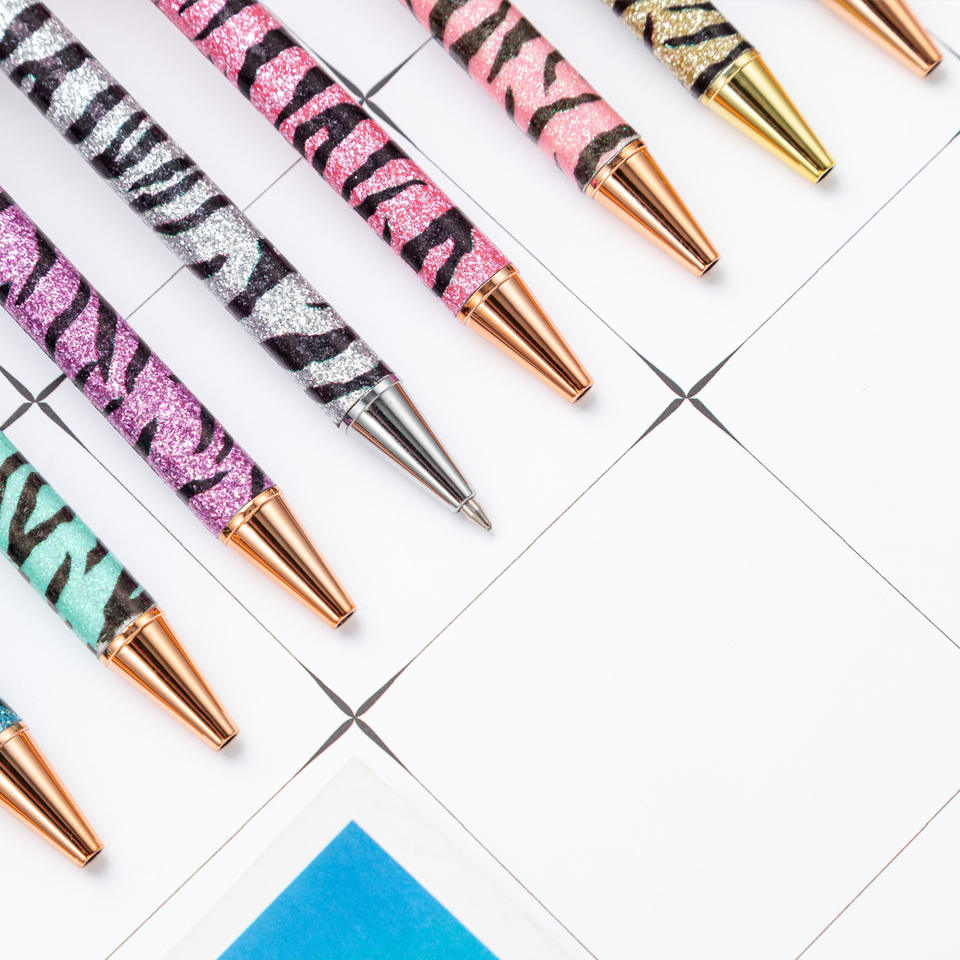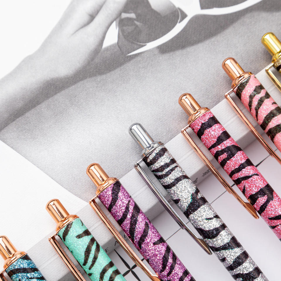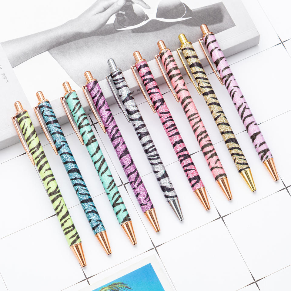 Penna a Sfera con Stampa Leopardata in Offerta, Regalo per Ragazze, Penna Retrattile Scintillante Personalizzata in Metallo con Motivo Zebrato
