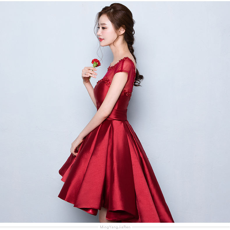 Vendita calda reale a buon mercato alto basso personalizzato Plus Size sera festa da ballo manica rosa abiti da damigella d'onore MBLA366