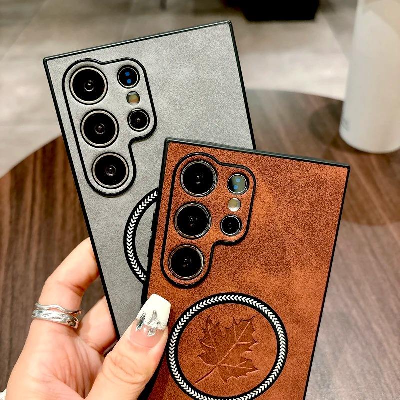 model number:Leather Maple Leaf Magnetic Phone Case for Samsung