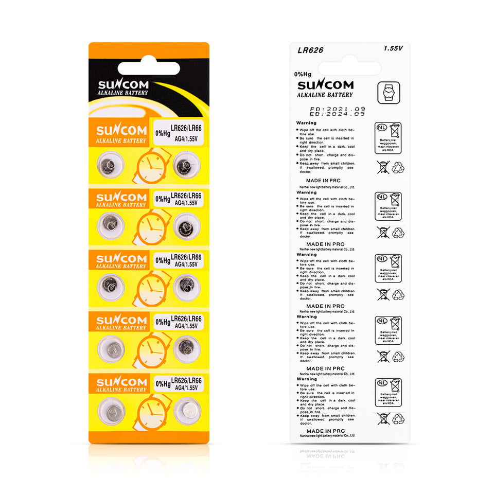 Vendita calda SUNCOM AG4 LR626 1.5V 23mAH batteria a bottone alcalina per prodotti digitali giocattoli telecomando elettrodomestico